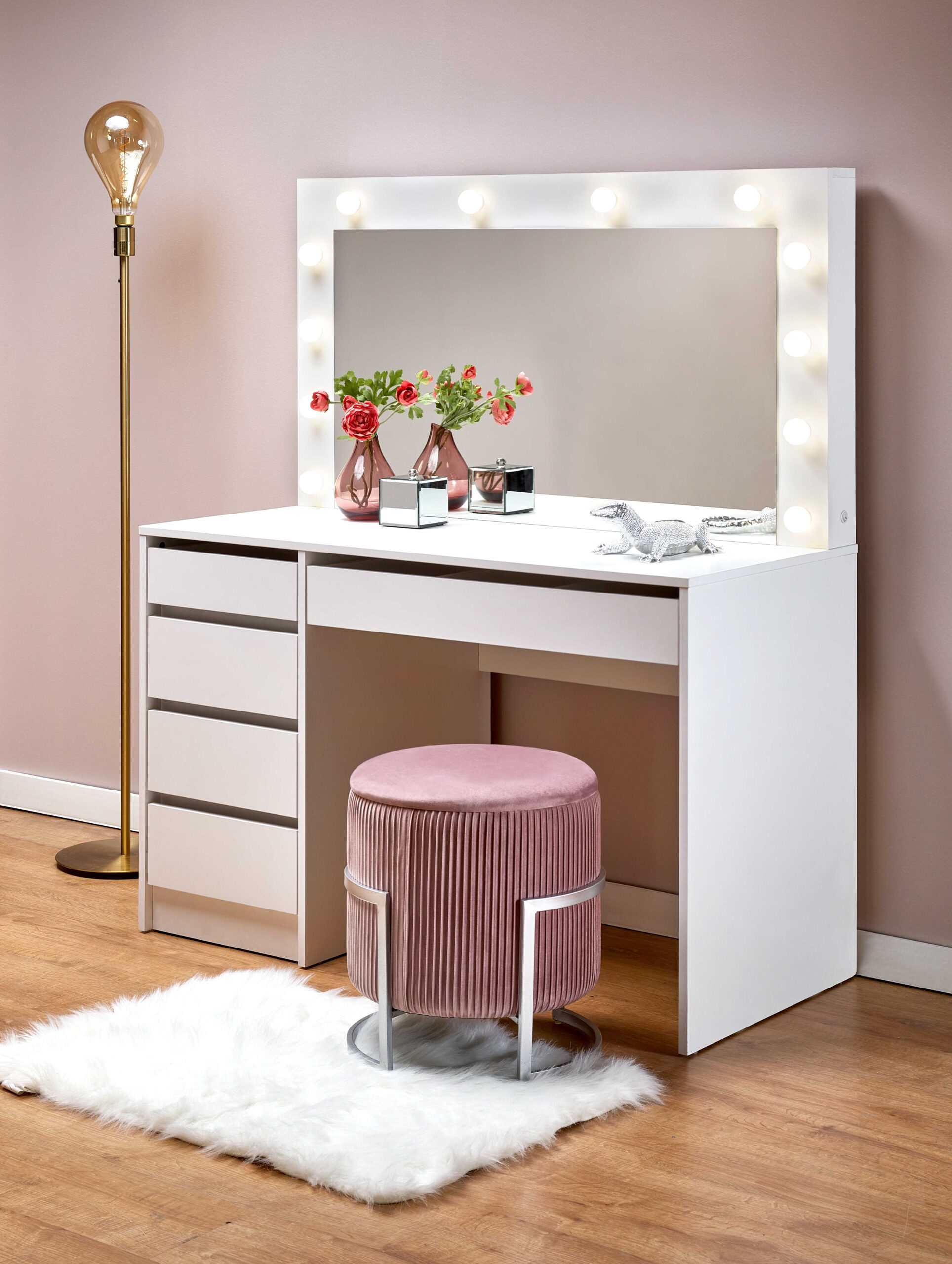 toaletka, wymiary: 120/55/140 cm, materiał: płyta meblowa okleinowana / oświetlenie LED, kolor: biały