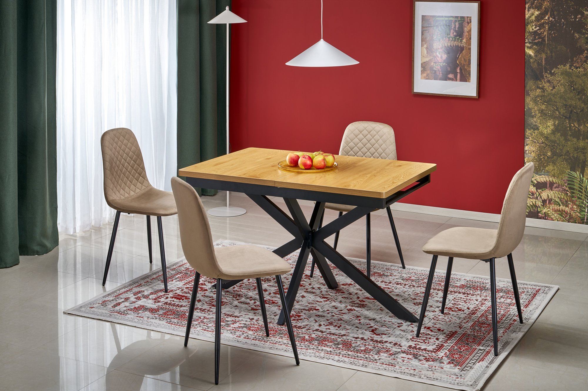 HOLTER stół rozkładany, blat – dąb złoty, nogi – czarne