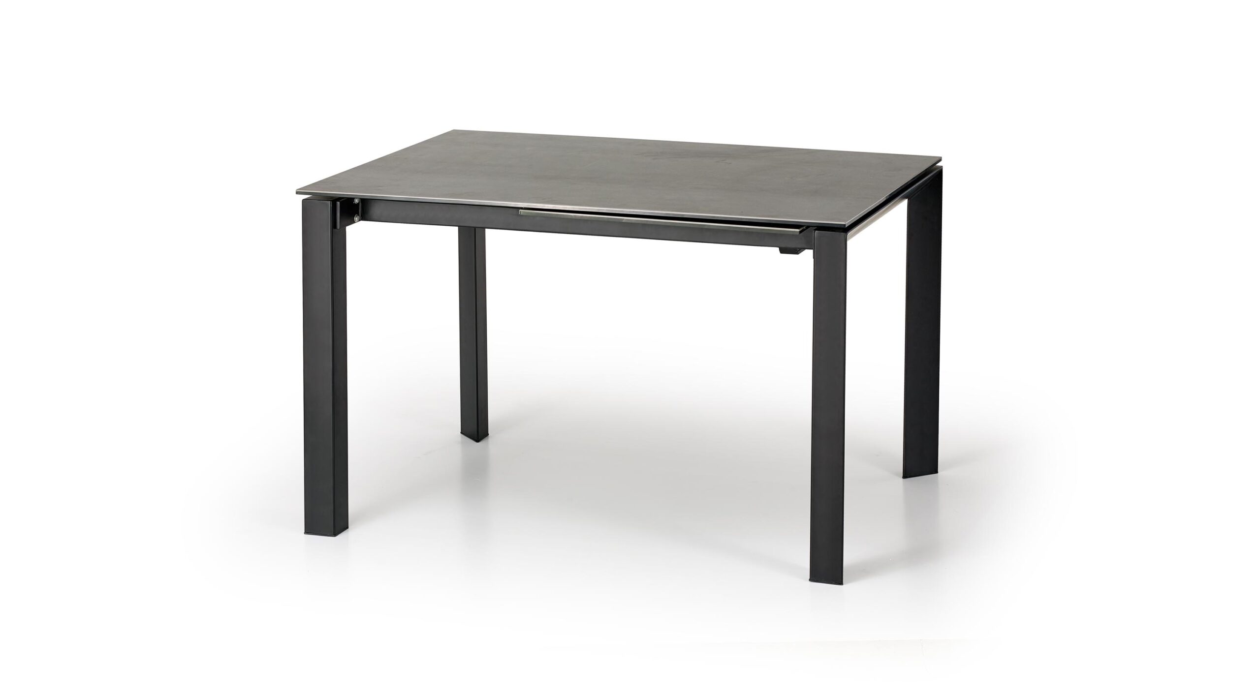 stół rozkładany, wymiary: 120-180/85/76 cm, materiał: blat ceramiczny / stal malowana proszkowo, kolor: blat – humo, nogi – czarne