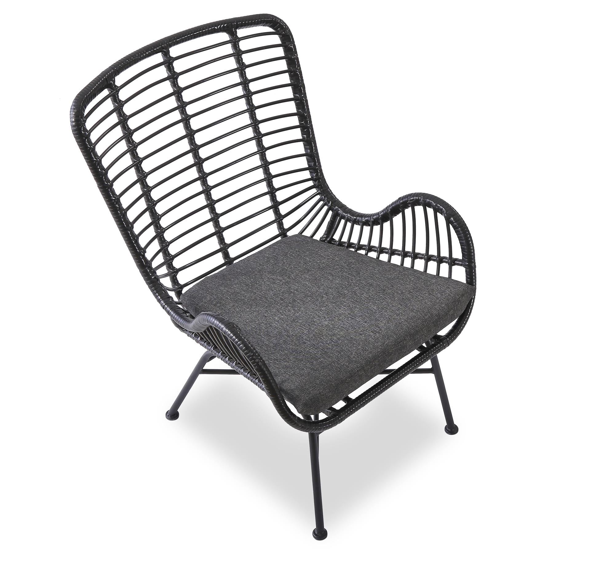 wymiary: 71/70/94/45 cm, materiał: rattan syntetyczny / stal malowana proszkowo / tkanina, kolor: czarny – popielaty