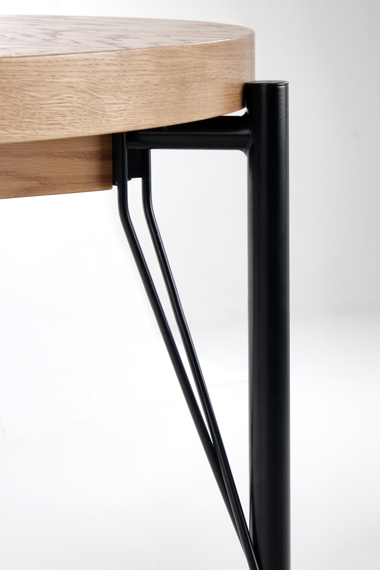 stół rozkładany, wymiary: 100-300/100/76 cm, materiał: MDF + okleina naturalna (dębowa) / stal malowana proszkowo, kolor: blat – dąb naturalny, nogi – czarny