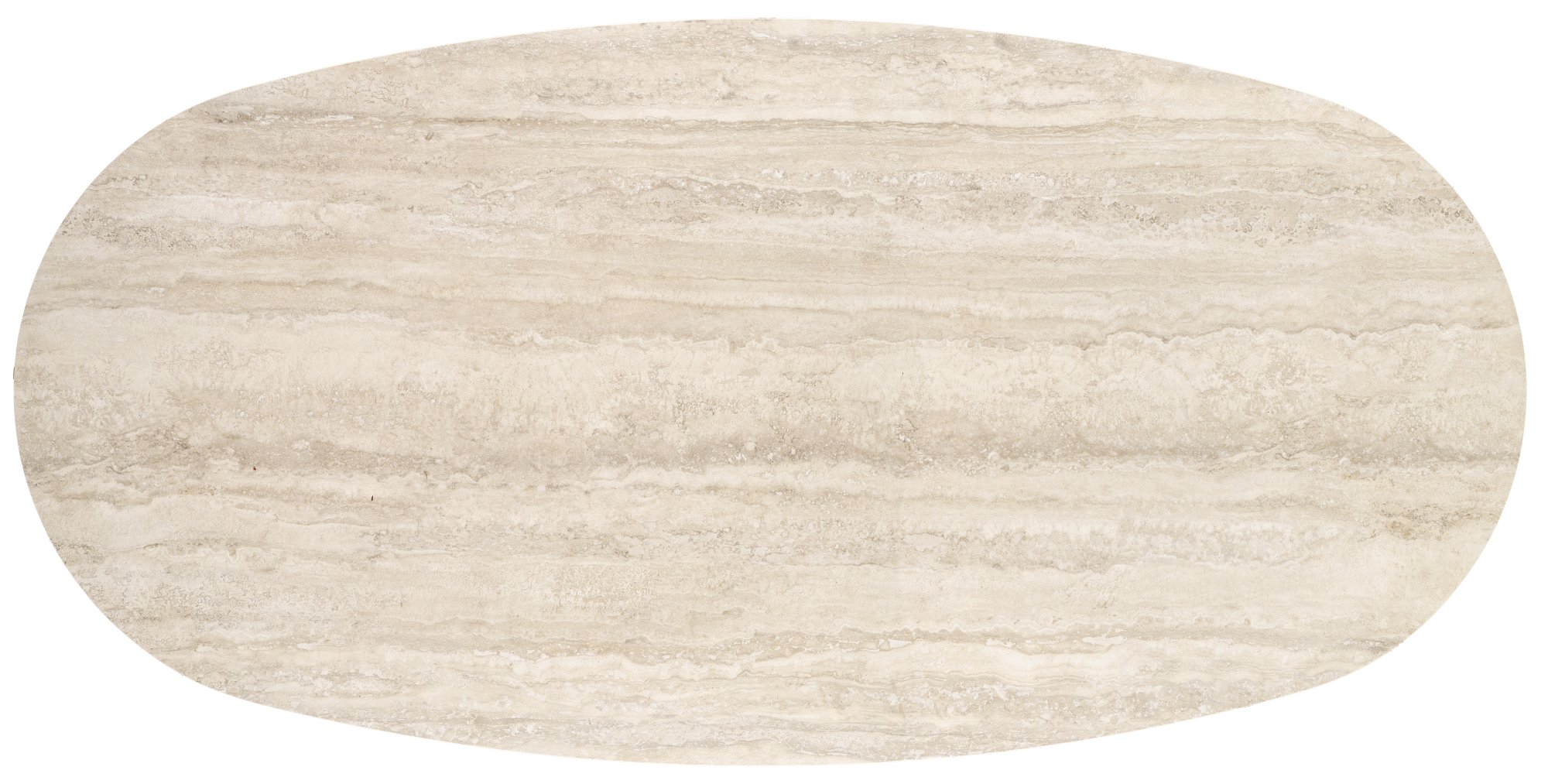 wymiary: 200/100/77 cm, materiał: spiek / stal malowana proszkowo, kolor: blat – jasny trawertyn, noga – czarny