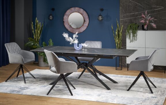 VITORINO stół rozkładany, blat – czarny marmur, nogi – czarny