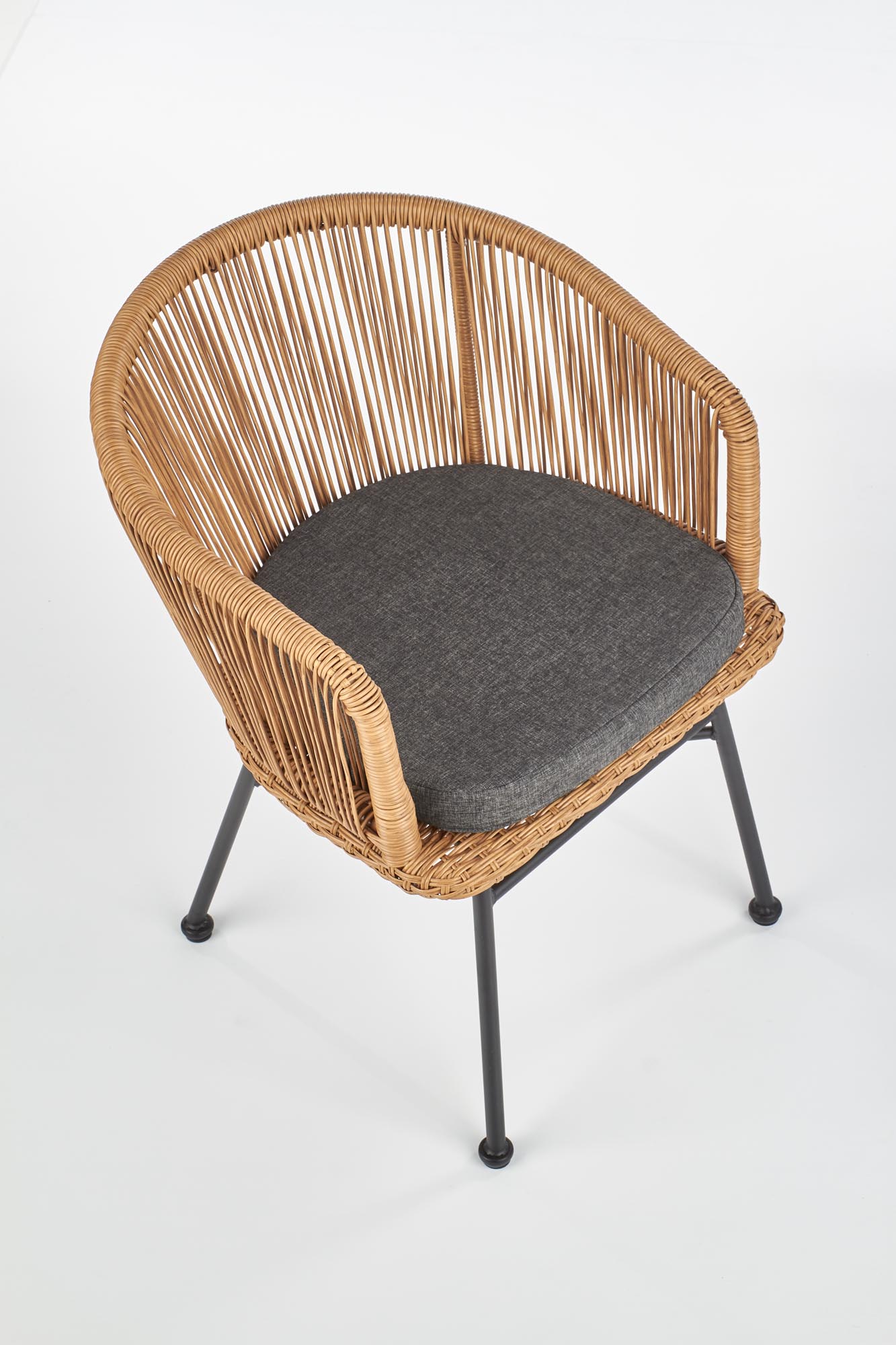 wymiary: 55/47/74/43 cm, materiał: rattan syntetyczny / stal malowana proszkowo / tkanina, kolor: naturalny – popielaty