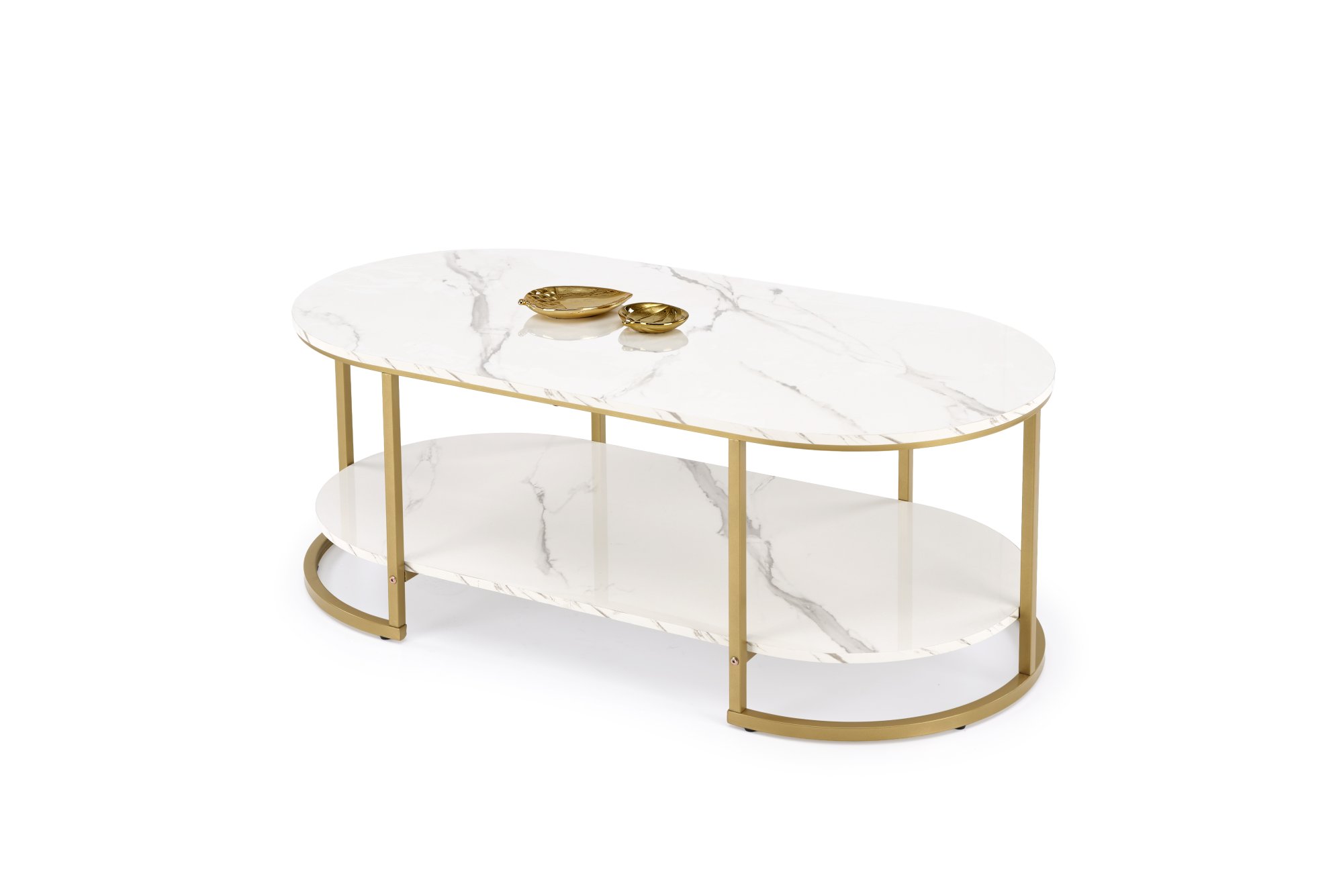 wymiary: 120/60/46 cm, materiał: MDF okleinowany / stal malowana proszkowo, kolor: biały marmur – złoty