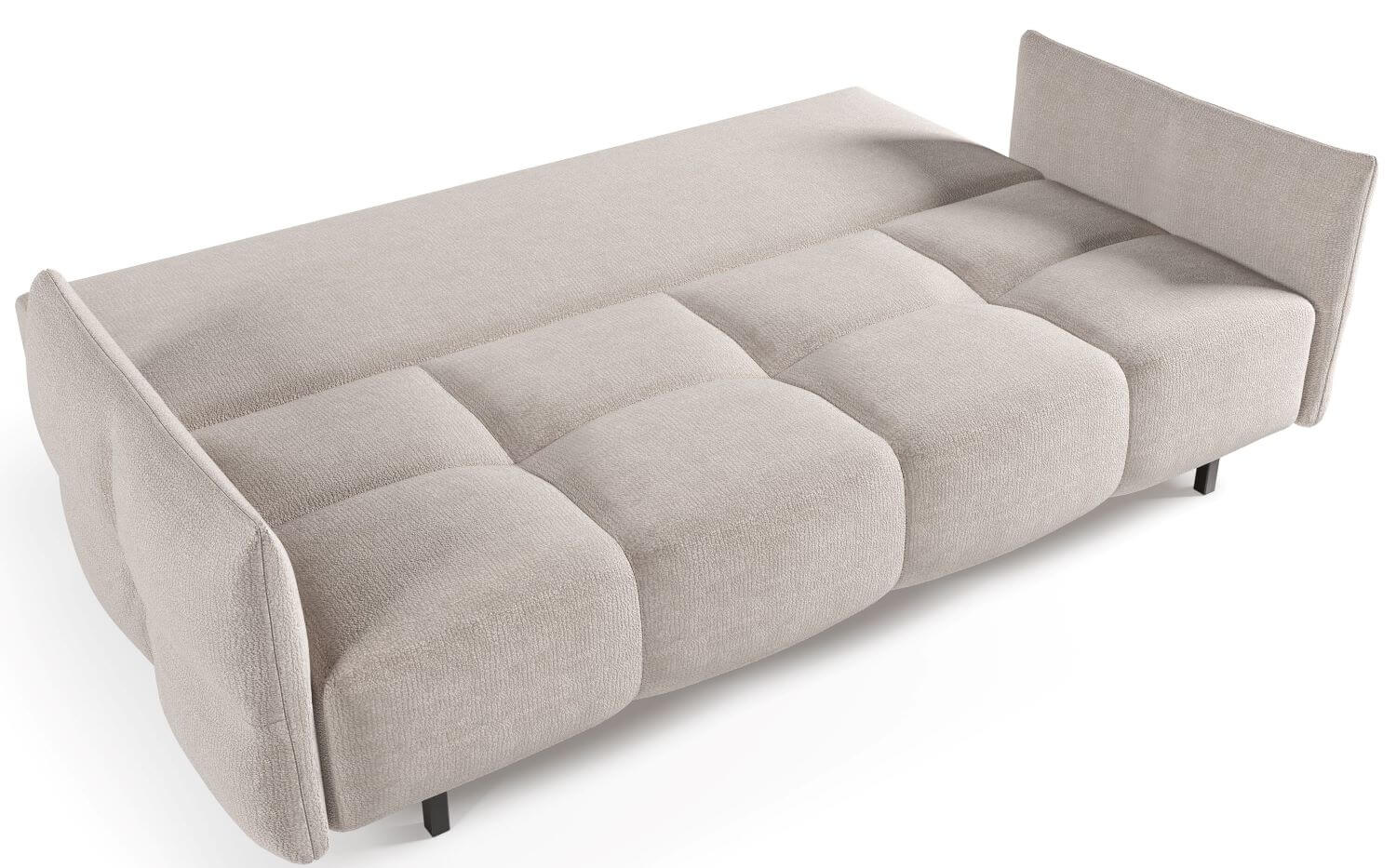 Model Bolero posiada również bardzo praktyczna i wygodną funkcje spania. Rozkładana jest przy pomocy tzw. mechanizmowi typu DL. Cała powierzchnia spania (141×191 cm), posiada zbliżoną sprężystość. Kanapa posiada dodatkowo duży pojemnik na pościel.