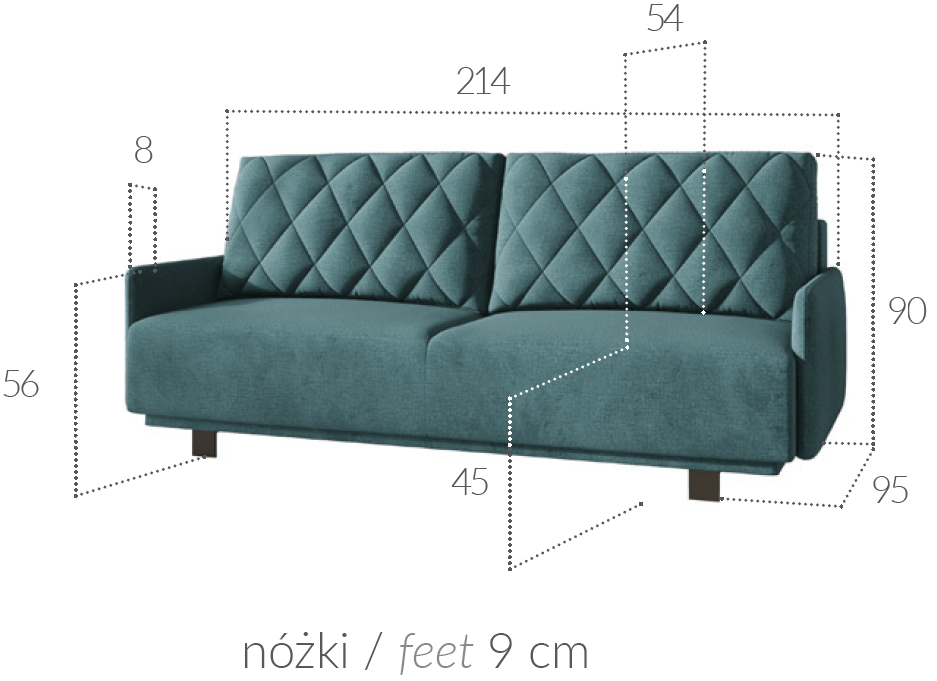 Wymiary w cm szerokość: 216 | wysokość: 95 | głębokość: 100