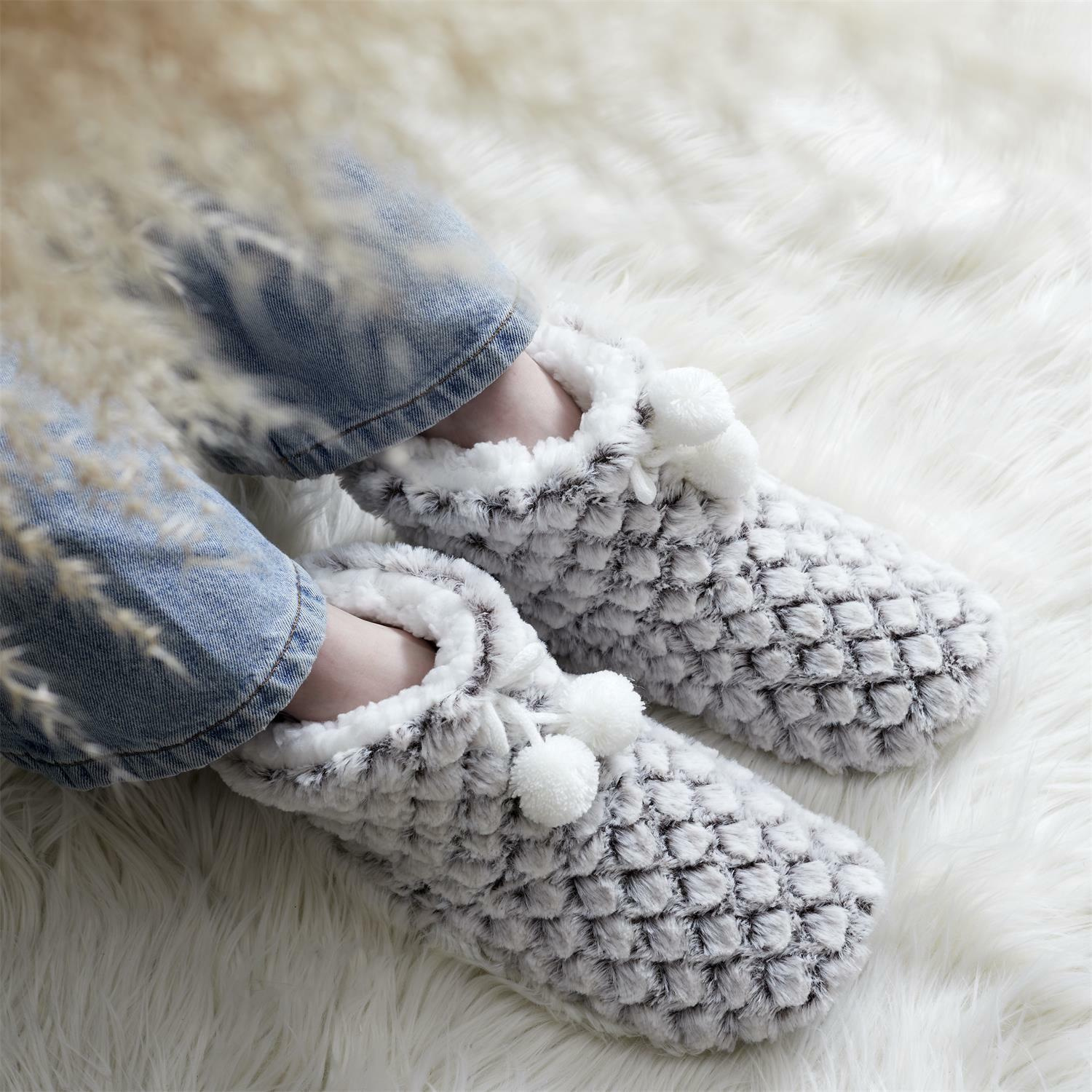 Skarpety – bambosze pomoga przetrwać naszym zmarźniętym stopą chłodne dni. Bambosze to idealnye kapcie, gdy wracamy do domu z ziębniętymi lub przeparźniętymi nogami. Kapcie pomogą szybko ogrzać stopy i otulą je komfortowym, przytulnym, miękkim amteriałem. 100%poliester. Rozmiar uniwersalny od 36 do 41.