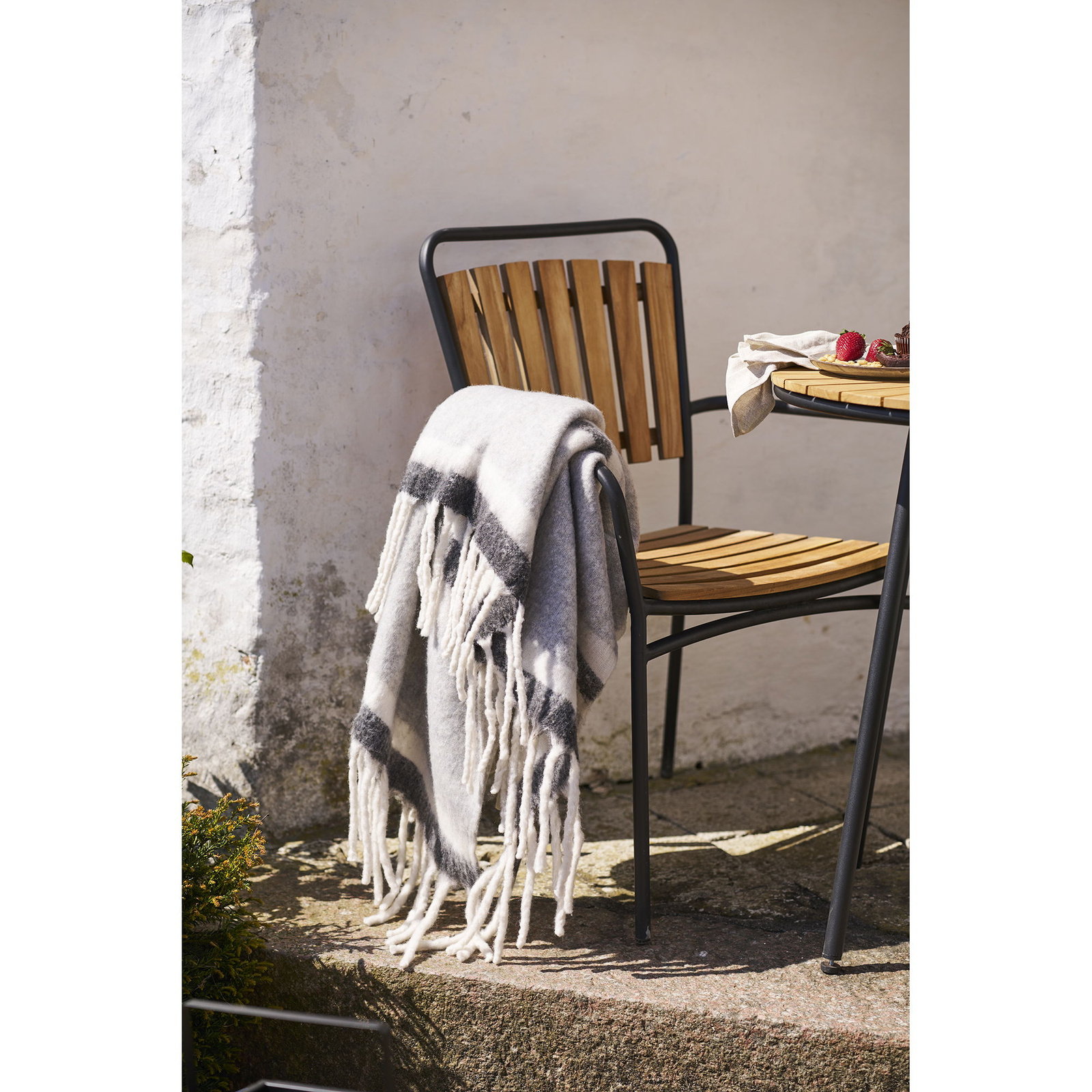 Pled, mieszanka wełny, szaro-biały, 130×170 cm, 52% wełna, 48% poliester