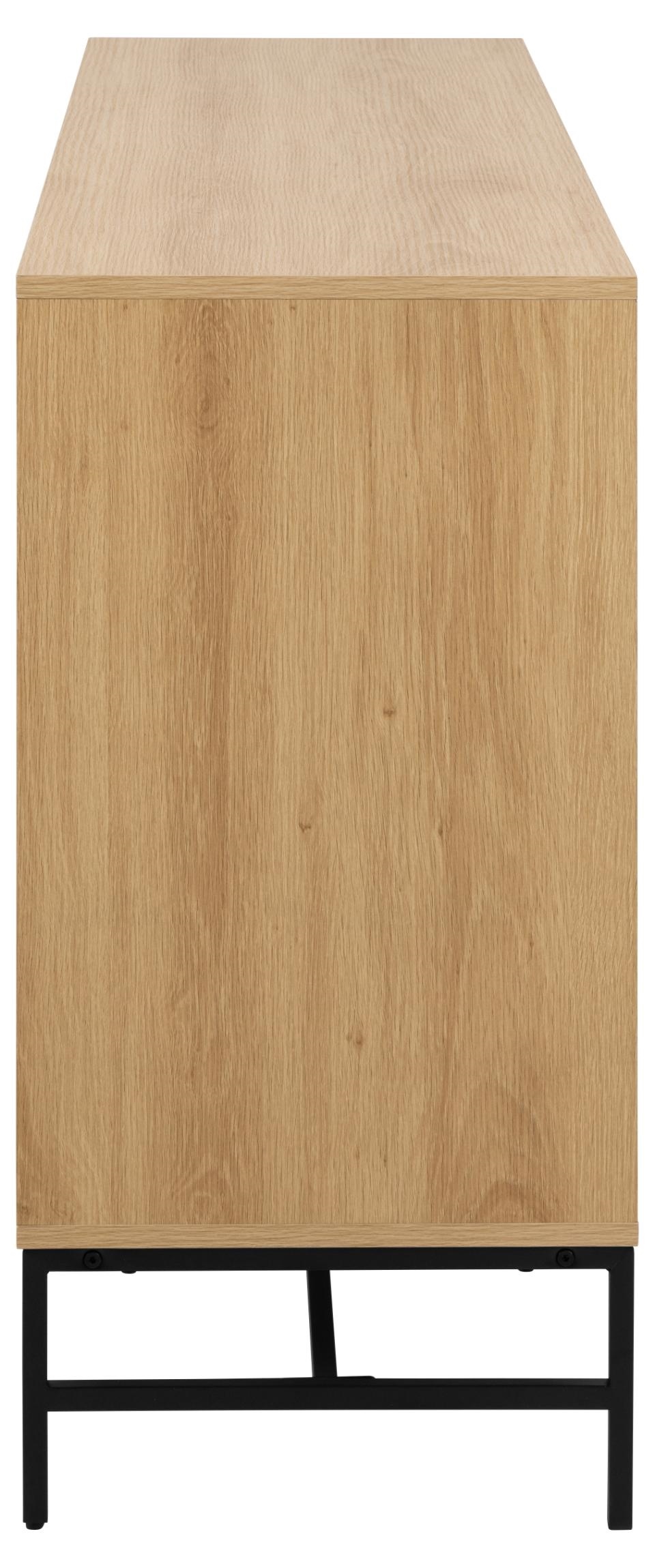 Komoda o dębowym wyglądzie z lamelowym frontem wie, jak przyciągnąć uwagę. Kontrastowy, dębowy wygląd uzupełniony czarnymi akcentami tworzy dobrze wyważony efekt wizualny. Dzięki 6 szufladom komoda oferuje dużo miejsca do przechowywania, a łatwa w pielęgnacji powierzchnia zwiększa jej praktyczność. Główne cechy: Komoda z szufladami z frontem lamelowym . Wyposażona w 6 szuflad zapewniających dużo miejsca do przechowywania. Łatwa w pielęgnacji powierzchnia o wyglądzie dębu. Geometryczna podstawa wykonana ze stali malowanej proszkowo na czarno. Certyfikat FSC . Zaprojektowany przez projektanta Lasse Cha Pedersena . Wysokość nóg: 18cm Wymaga montażu. Waga mebla: 55kg. Max. obciążenie: 25 kg Wymiary kartonów: 170x50x7cm 21kg, 90x49x13cm, 20kg, 85x50x13cm, 20kg