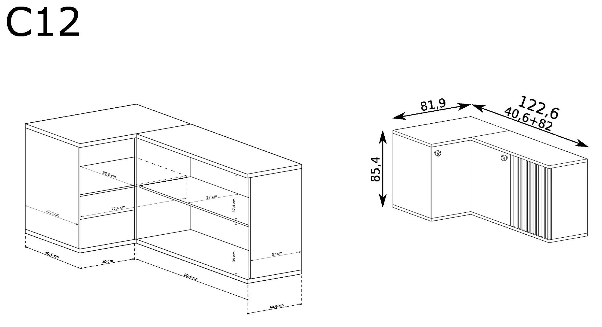 | Wymiary w cm | szerokość: 122,6 | wysokość: 85,4 | głębokość: 40,6 |