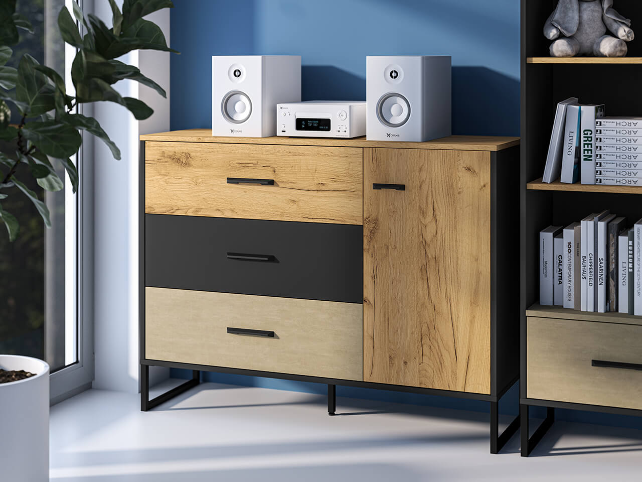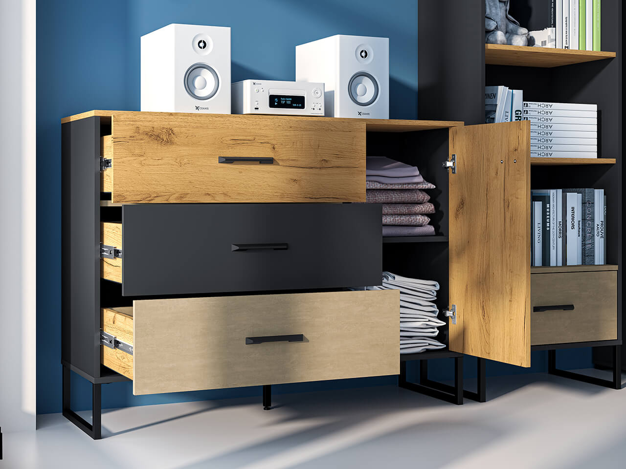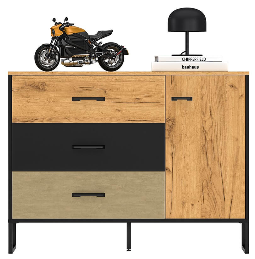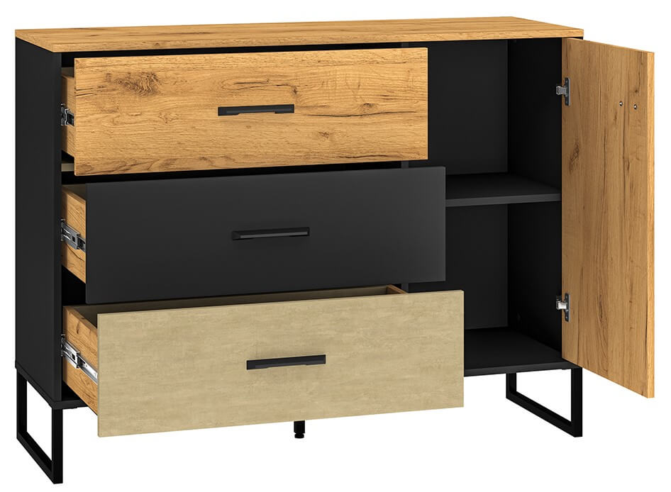 Dąb Craft Złoty + Czarny + Stal Premium