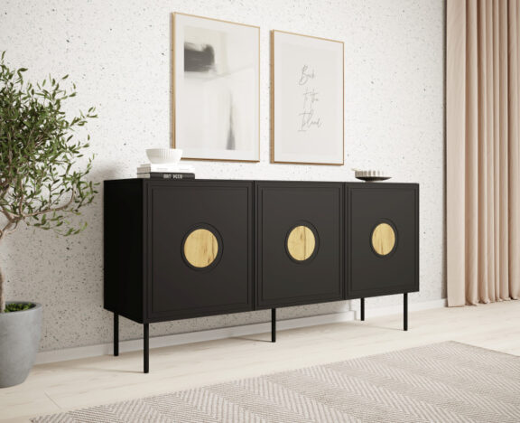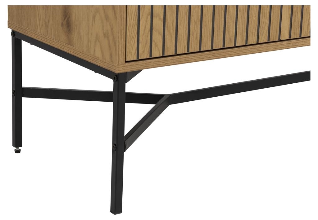 Dzięki nienagannemu, minimalistycznemu wyglądowi komoda Jaipur jest czymś więcej niż tylko miejscem na drobiazgi – nada ton każdemu wnętrzu. Wystarczy spojrzeć na te lamelowe fronty z eleganckimi uchwytami z tego samego, malowanego proszkowo metalu, co podstawa. Kredens posiada regulowane półki oaz głęboką szufladę, aby dopasować się do Twoich potrzeb. Najważniejsze cechy: Fronty lamelowe o wyglądzie dzikiego dębu z drewnianą strukturą Regulowane półki dopasowane do potrzeb 2 drzwi, 1 szuflada i otwarta półka do przechowywania Eleganckie uchwyty z metalu malowanego proszkowo Smukła podstawa z metalu malowanego proszkowo Duński design chroniony wyłącznie dla Actona Ilosć kartonów: 2 Wymiary kartonów: 74×54,5x16cm 194×51,5×9,7cm Waga kartonów: 26kg 26kg Materiały: metal, MDF