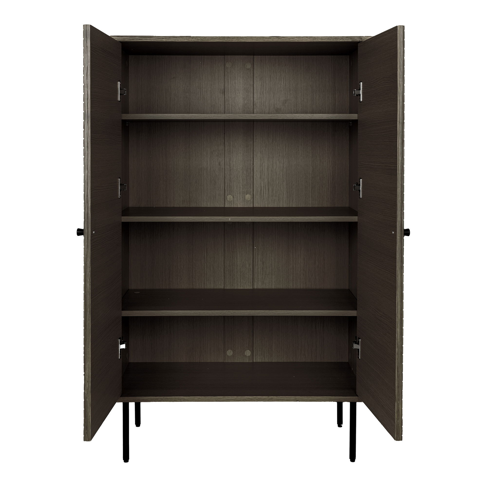 Komoda, 2 drzwi, fornir dębowy dymiony, czarne metalowe nogi, 80x40x130 cm, fornir dębowy, melamina, MDF, stal