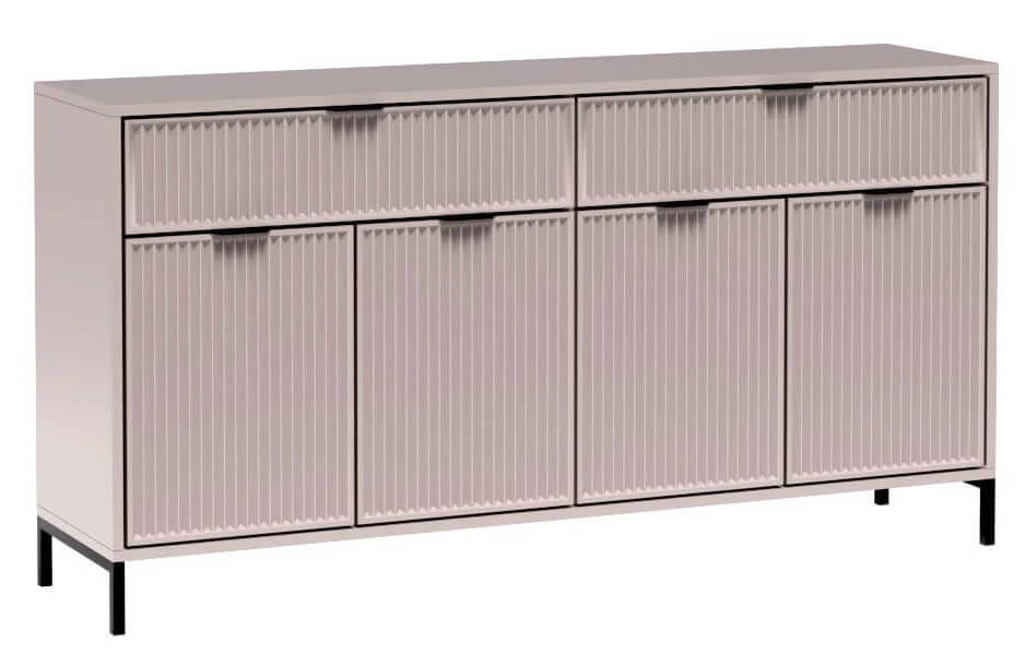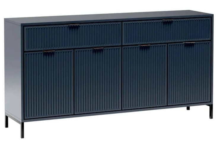 Designerska komoda, która idealnie wpasuje się do każdego salonu, jadalni, gabinetu czy biura. W górnej części mebla znajdziemy dwie duże szuflady na ubrania, akcesoria, dokumenty, dzięki czemu staje się bardzo funkcjonalna. W szafkach znajdziemy dwie duże półki, które pozwolą na łatwą organizację. Dostępna w trzech kolorach – cashmere/indigo/green stone.