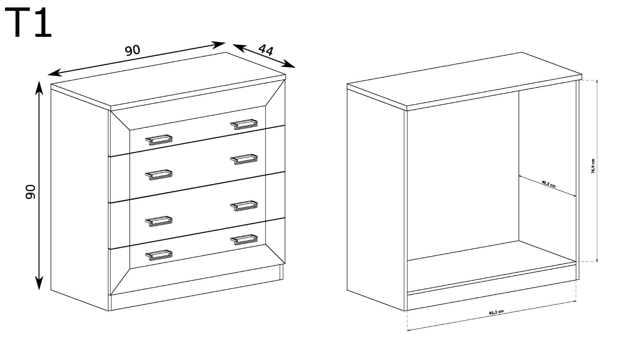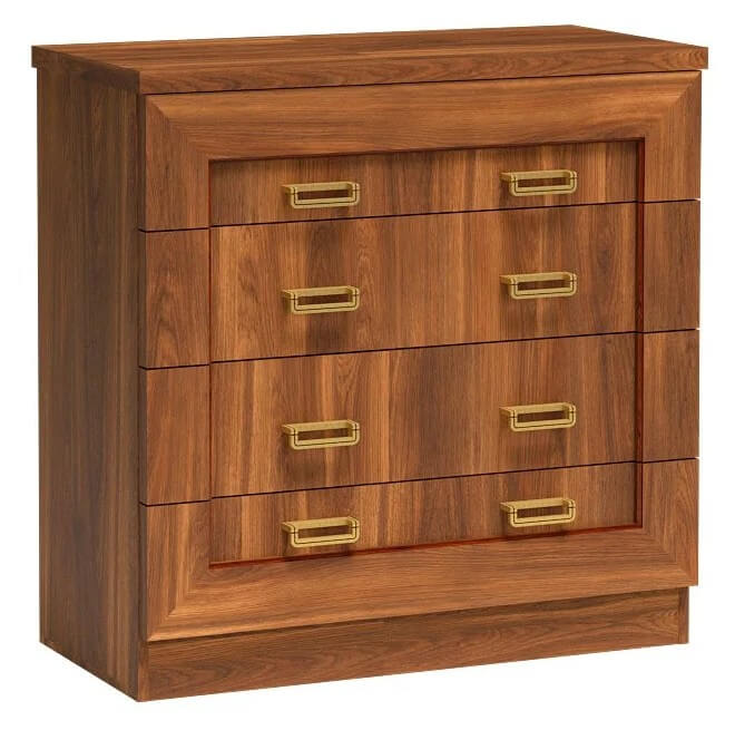 Nasza komoda pomieści wiele rzeczy, a w dodatku na długo zachowa swój piękny kolor. Dostępna w dwóch odcieniach dębu. Idealny mebel do sypialni, salonu i pokoju twojego dziecka. Zastosowane metalowe uchwyty dodają uroku. Płynny ruch wysuwania szuflad, których jest aż cztery, zapewniają dobrej jakości prowadnice. Dostępna w dwóch wybarwieniach.