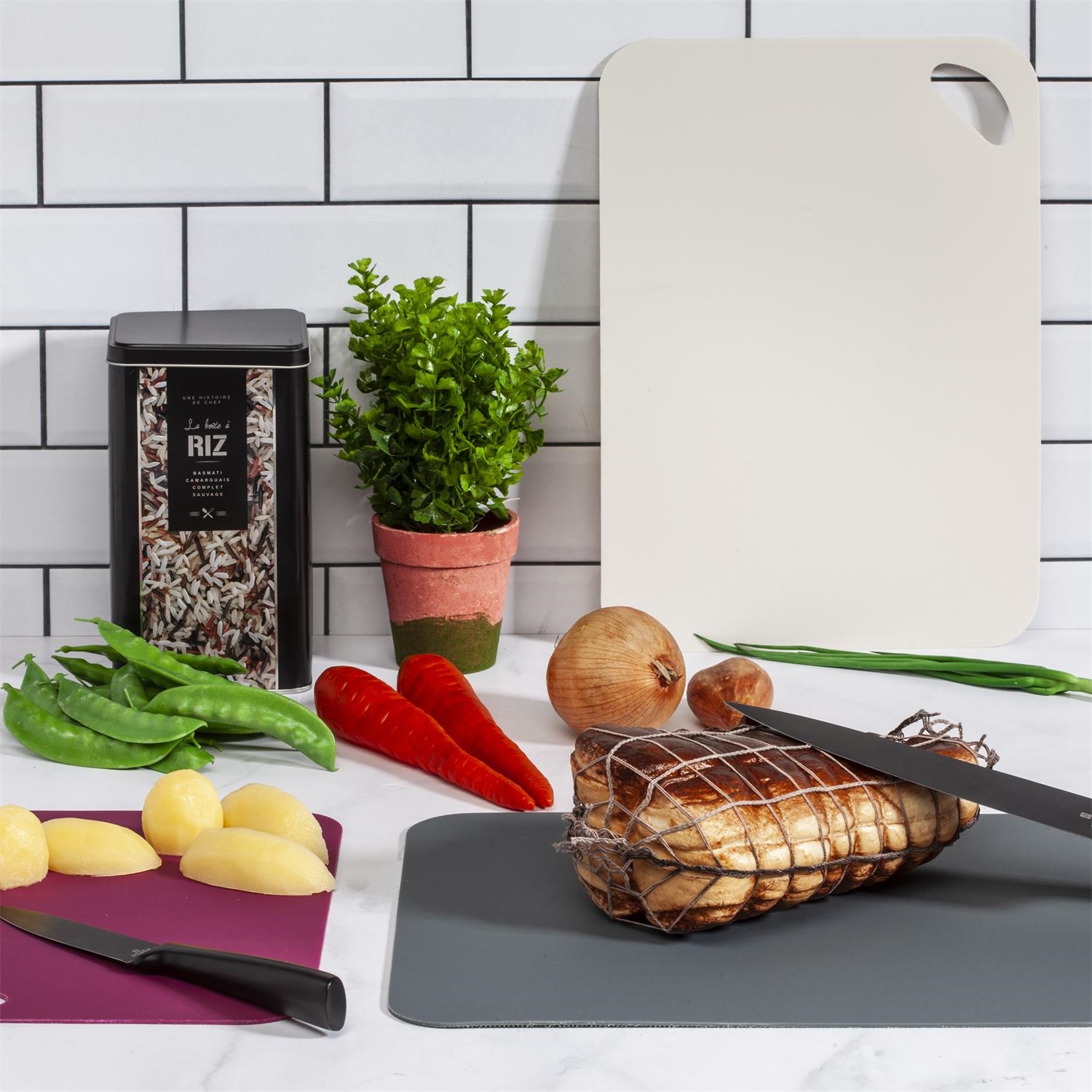 Komplet desek do krojenia Flexible wykonany jest z polipropylenu. Każda z desek jest dwustronna. Wyjątkowo lekkie, zajmują mało miejsca i łatwo utrzymać je w czystości. Deski nadają się idealnie do nowoczesnej kuchni. Ilość kartonów: 1 Wymiary kartonów: 29x38x0,5cm