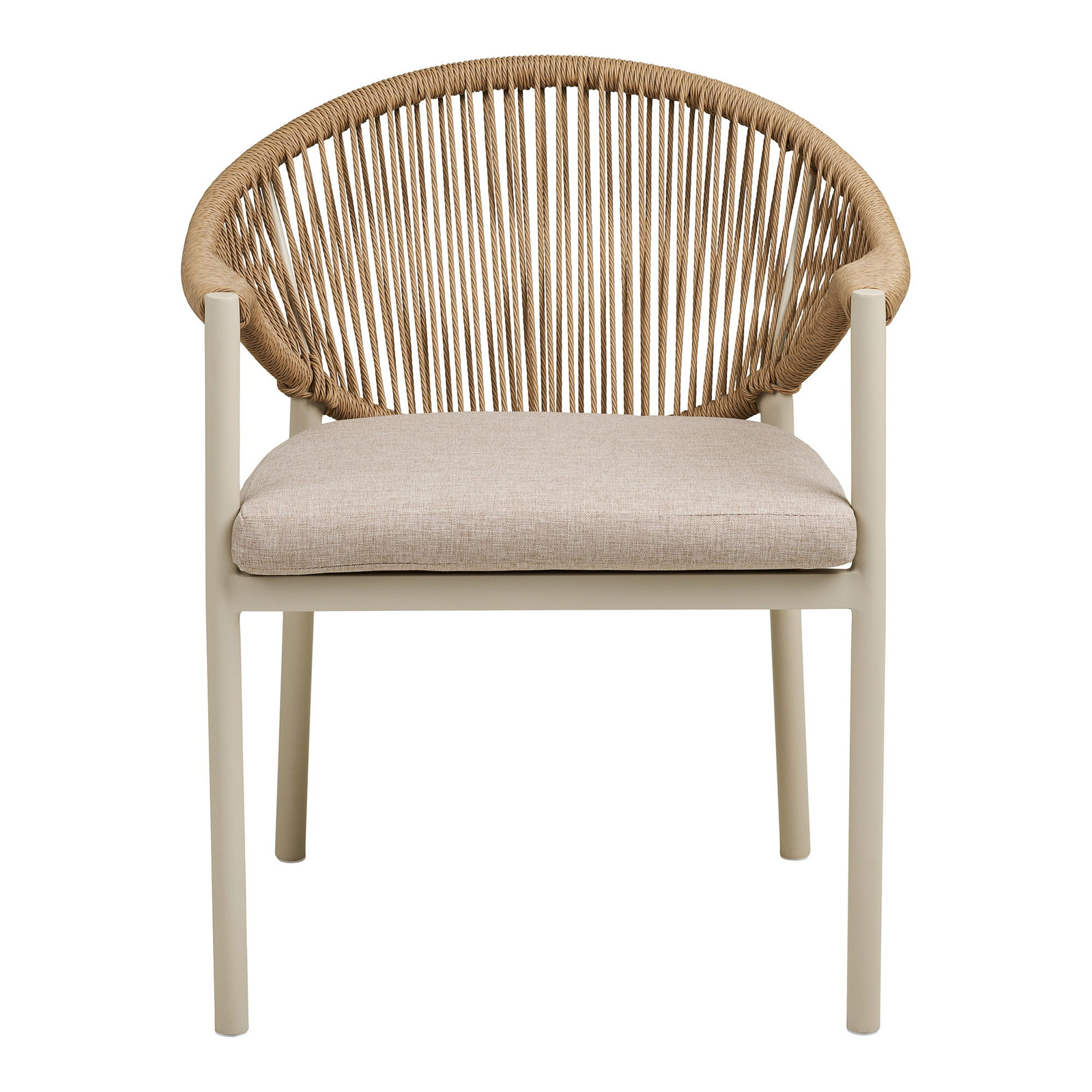Krzesło do jadalni, aluminium/poliester/rattan PE, piaskowe/naturalne, z poduszką Poduszka, rattan PE, aluminium, poliester