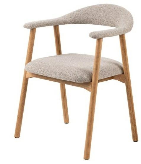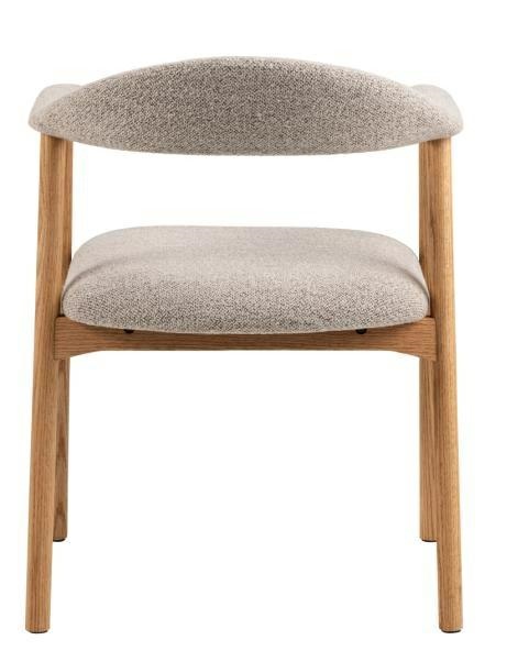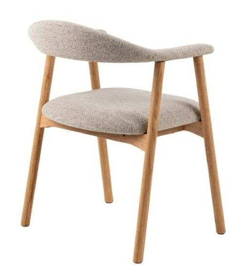 Krzesło Addi z podłokietnikami to krzesło w stylu boho z tapicerowanym siedziskiem i oparciem. Wykonane ono zostało z olejwanego, litego drewna dębu. Stabilna podstawa oraz idealnie wyprofilowane oparcie gwarantuje komfort siedzenia. Tkanina jaką użyto to siedziska i oparcie to grubopleciony materiał o kolorze beżowym Monza 60. Ciekawa tekstura i bardzo gruby splot materiału tworzą idealne połączenie z naturalnymi słojami drewna nóg. Max. obciążenie 110kg. Wysokośc oparcia: 32cm Głębokośc siedziska: 45cm Szerokość siedziska: 47cm Wysokość podłokietników od podłogi: 66,5cm Szerokość podłokietników: 7cm Głębokość podłokietników: 9cm Waga krzesła 4kg. Wymiary kartonu: 28x58x75cm