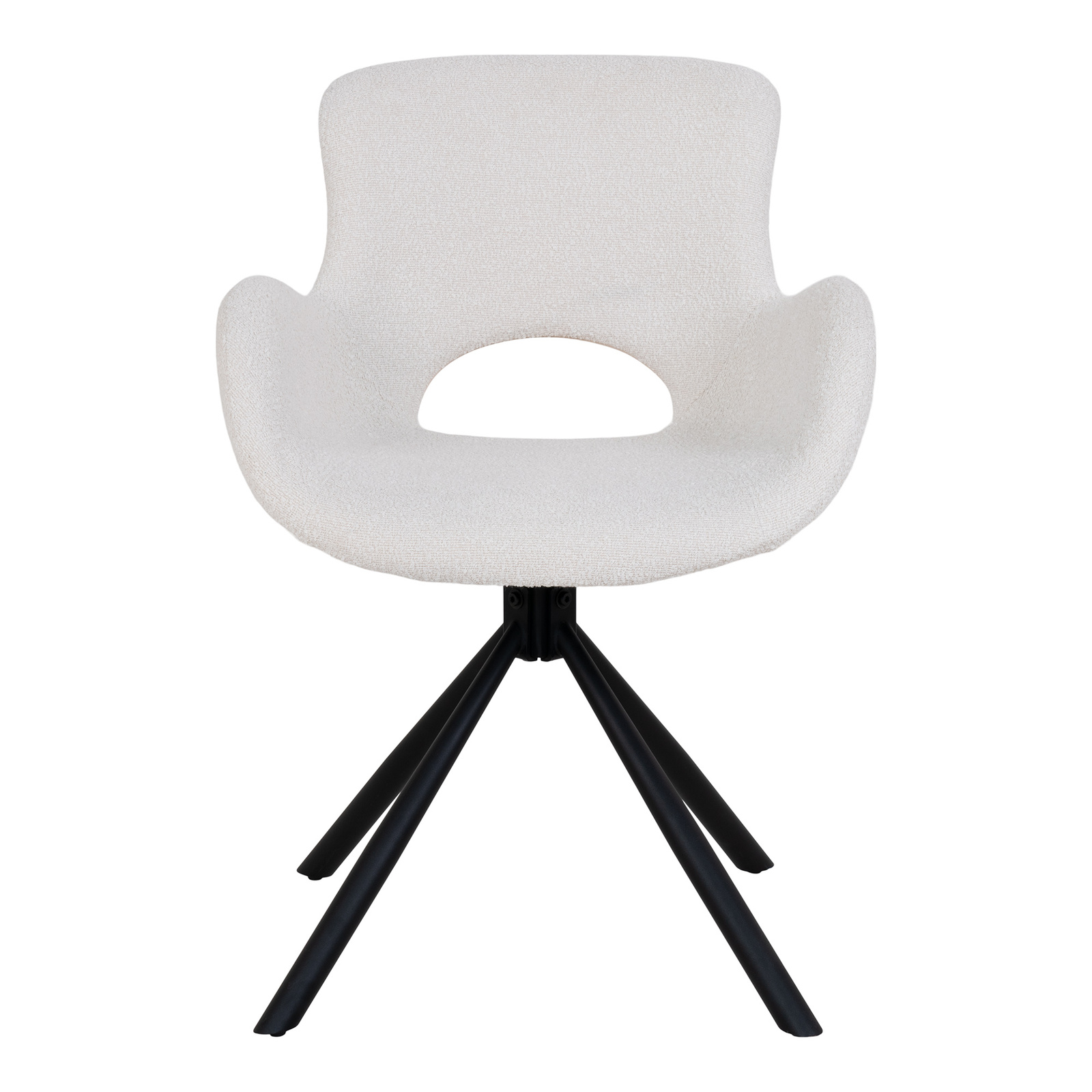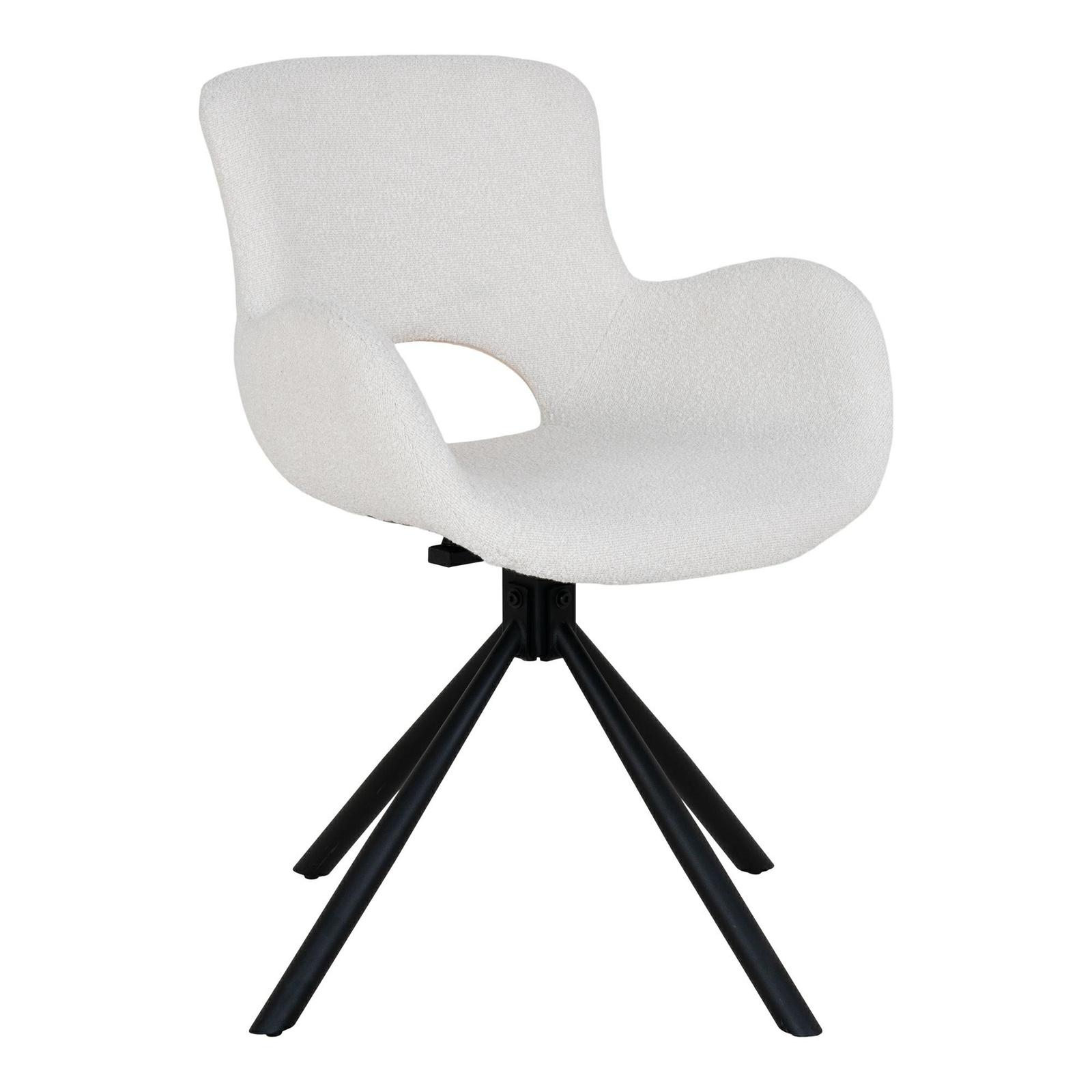 Krzesło do jadalni, obrotowe, bouclé sprawdzi się w modnej i ponadczasowej jadalni lub salonie. Krzesło o obłych kształtach i lekkiej konstrukcji doda przytulnego wyglądu. Tkanina boucle o efektownej fakturze nawiązuje do stylu japandi.