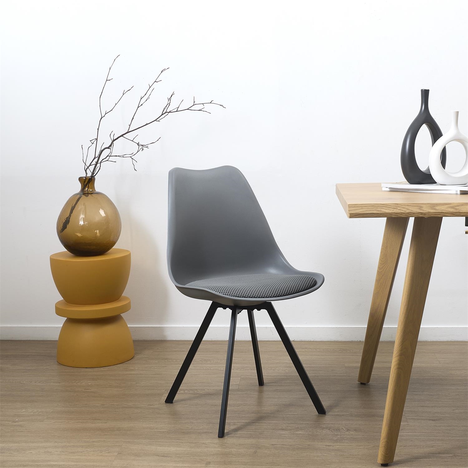 Krzesło Pori to połączenie wygodnego, wyprofilowanego siedziska oraz wytrzymałej metalowej podstawy. Tkanina dystansowana na krześle sprawia wrażenie trójwymiarowej. Tkanina charakteryzuje się bardzo dobrą przepuszczalnością powietrza oraz minimalnym pochłanianiem wody i wilgoci, dzięki czemu krzesł sprawdzi się również w jadalni lub kuchni. Skład tkaniny 100% poliester. Gramatura tkaniny 210g/m2. Oparcie oraz siedzisko krzesła tworzą spójną całośc i gwarantują wygodne oparcie podczas posiłku. Krzesło Pori wymaga łatwego montażu. Max. obciążenie krzesła 110kg. Krzesło nie sztapluje się. Wymiary kartonu: 61x47x66cm. Waga 22kg. Max 4 szt w kartonie