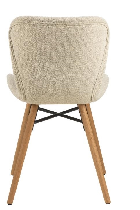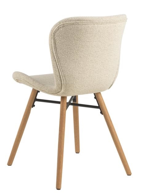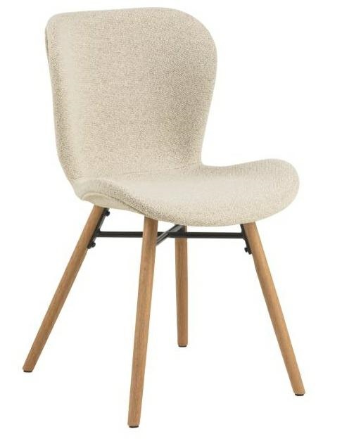 Krzesło Batilda do jadalni łączy w sobie styl i wygodę, nadając każdej jadalni nowoczesną estetykę. Tapicerowane miękką beżową tkaniną bouclé siedzisko zapewnia wsparcie i wygodę siedzenia. W połączeniu z solidną podstawą z olejowanego dębu, krzesło nadaje pomieszczeniu przytulności. Krzesło do jadalni Batilda -A1, tkanina Monza 90 FR, podstawa dąb olejowany. Tapicerka ognioodporna. Wysokość oparcia: 38 cm, Głębokośc siedziska: 40 cm, Szerokośc siedziska: 47 cm Max. 2 szt w kartonie. Wymiary kartonów: 49x58x52 cm i 32x32x13 cm. Wymaga montażu Max. obciążenie 110 kg.
