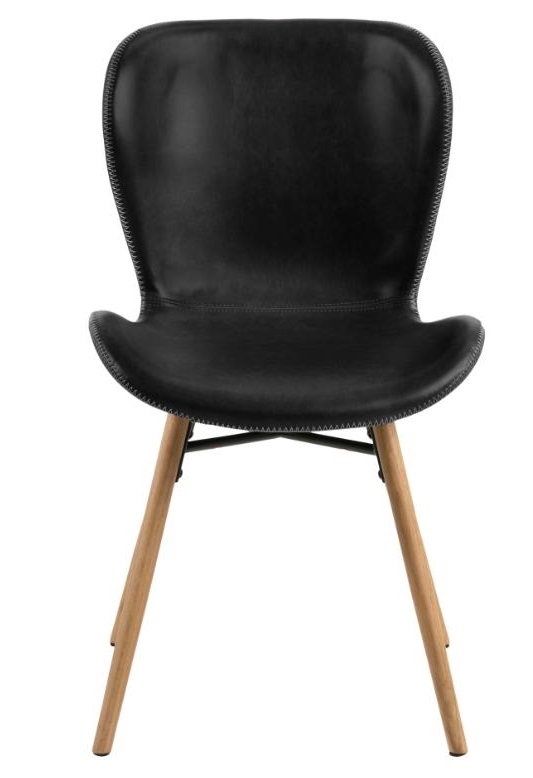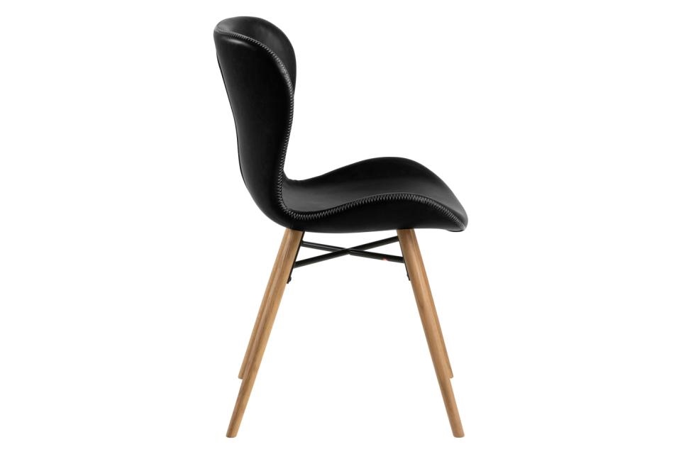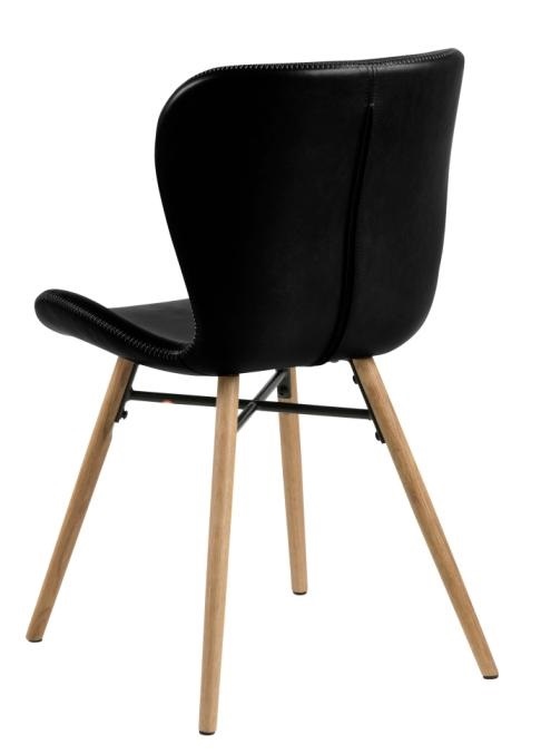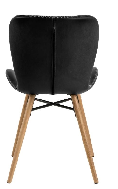 Krzesło Batilda Retro czarne to doskonałe rozwiązanie do salonu czy jadalni. Solidna podstawa wykonana z olejowanego drewna dębowego, wzmocniona metalowym krzyżakiem zapewni stabilność podczas użytkowania. Siedzisko z eko skóry w kolorze czarnym z grubszym obszyciem wygląda bardzo efektownie. Krzesło jest dośc lekkie, gdyż waży 6,15 kg. Jego maksymalne obciążenie to 120 kg. Ilość kartonów: 2 Wymiary kartonów: 49x58x52cm 32x32x14cm Waga kartonów: 5kg 1,15kg