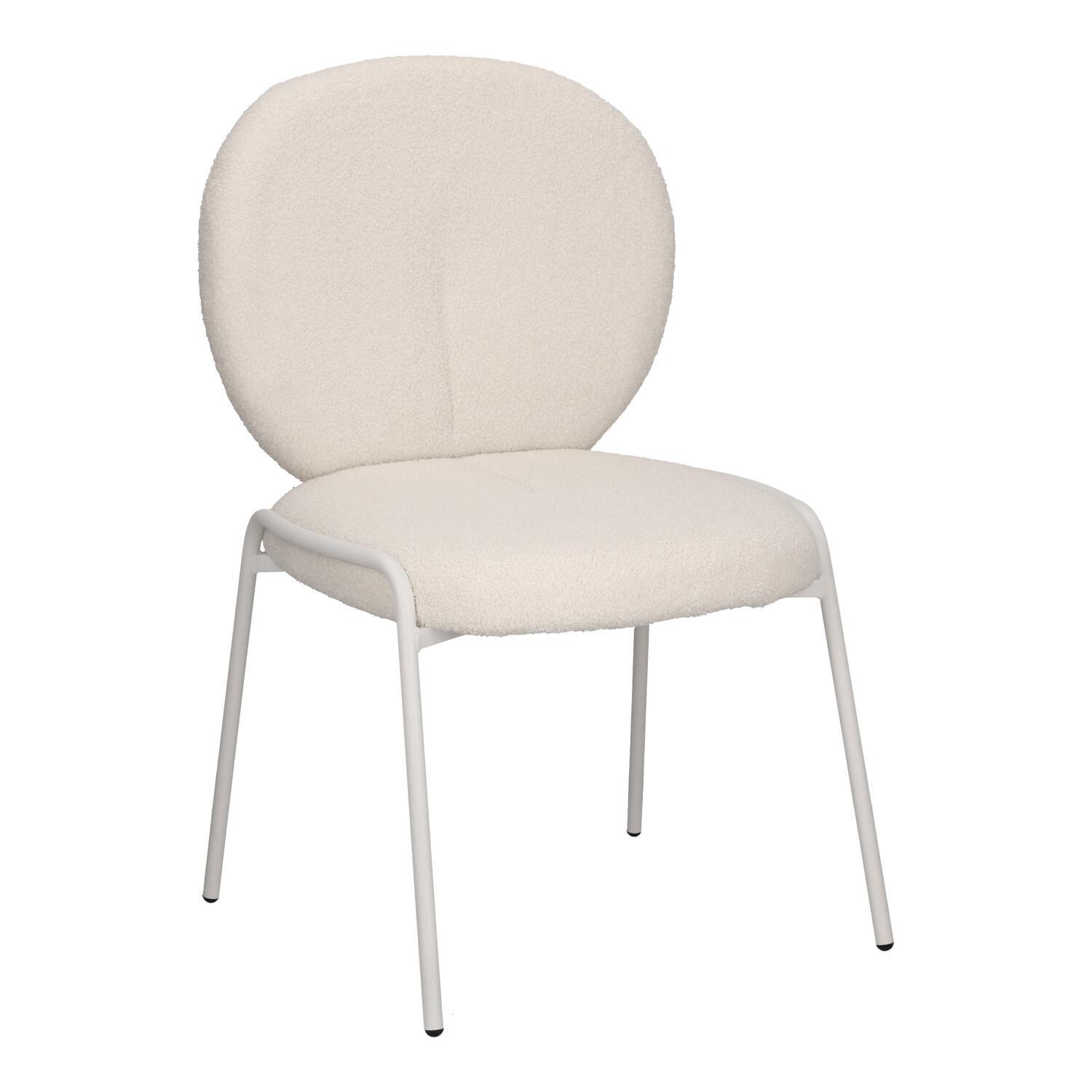 Stylowe krzesło Bianco w stylu boho z czterema metalowymi nogami malowanymi proszkowo na biało będzie kwintesencją modnego i jasnego salonu. Tapicerowane tkaniną boucle, która jest miękka i stylowa, zapewnia wyjątkowy komfort i elegancję. Idealne do wnętrz w stylu naturalnym o jasnym bądź beżowym wykończeniu. Krzesło Bianco łączy funkcjonalność z estetyką. Doskonale sprawdzi się w salonie, jadalni czy sypialni, wprowadzając ciepły, przytulny klimat. Bardzo wygodne krzesło Bianco jest idealne do długiego siedzenia i relaksu przy stole z rodziną lub znajomymi. Wymaga montażu. Max. obciążenie 120 kg Nie sztapluje się Nie nadaje się do użytku zewnętrznego
