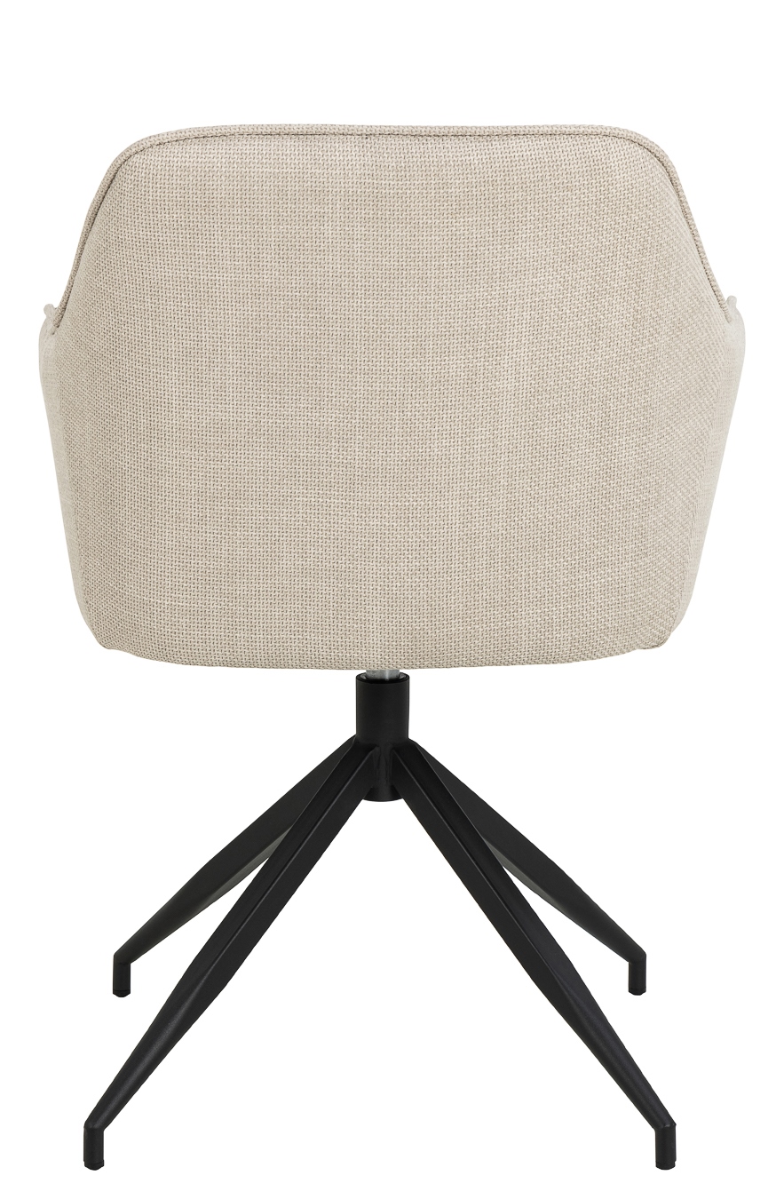 Krzesło Brenda to nowoczesny, stylowy projekt. Jego podstawa została wykonana z malowanego proszkowo metalu, zaś siedzisko zostało wykonane z użyciem pianki poliuretanowej i obite tkaniną Basel fabric beige 24. Charakteru dodają ciekawe przeszycia. Istotną cechą krzesła Brenda są 4 rozchodzące się na boki nogi, dzięki którym krzesło może się obracać. Wymiary: 59×54,5×84,5cm Waga: 9kg