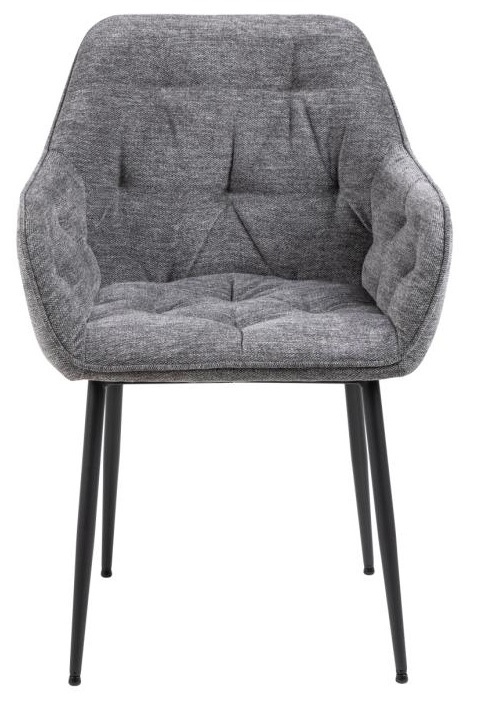 Krzesło Brooke jest krzesłem tapicerowanym miękką tkaniną Skyland fabric anthracite 45. Krzesło posiada idealnie wyprofilowane podłokietniki, które tworzą z siedziskiem i oparciem spójną całość. Oparcie krzesła zostało ozdobione pikowaniem, które dodaje mu stylu. Podstawą krzesła są malowane proszkowo na czarno metalowe nogi. Maksymalne obciążenie: 120 kg. Waga Krzesła: 8,8 kg Wysokość oparcia: 37cm Szerokość siedziska: 41cm Głębokość siedziska: 40,5cm Ilość kartonów: 1 Wymiary kartonów: 61x58x52,5cm