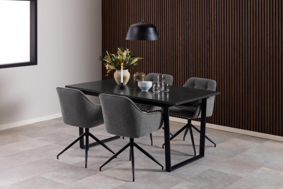Krzesło do jadalni Brooke z podłokietnikiem i obite tkaniną Monza anthracite 130 to wygodny mebel na czteroramiennej podstawie. Nogi krzesła wykonane zostały z matowej, czarnej stali malowanej proszkowo. Podkreśl charakter jadalni za pomocą wygodnego, beżowego krzesła z podłokietnikami. Dominującym elementem tego krzesła jest nienaganna sylwetka oraz profilowane siedzisko. Tapicerowane tkaniną bouclé siedzisko jest przyjemne zarówno do siedzenia podczas posiłku, jak i do dłuższego siedzenia np. przy biurku. Poprzez dodanie przeszyć, krzesło zyskuje niezwykle modny wygląd. Wysokość oparcia: 37cm Szerokość siedziska: 41cm Głębokość siedziska: 40,5cm Wysokość podłkietników: od podłogi:63cm, od siedziska: 19cm Szerokośc podłokietników: 4cm Głębokość podłokietników 35cm Wym. kartonu: 57x54x51cm Waga: 9kg