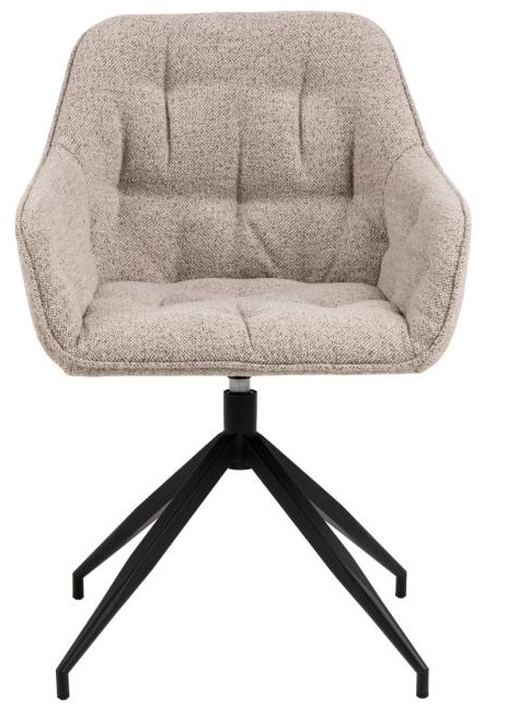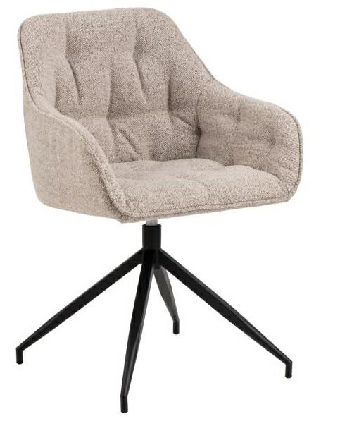 Krzesło do jadalni Brooke z podłokietnikiem i obite tkaniną Monza beige 60 to wygodny mebel na czteroramiennej podstawie. Nogi krzesła wykonane zostały z matowej, czarnej stali malowanej proszkowo. Podkreśl charakter jadalni za pomocą wygodnego, beżowego krzesła z podłokietnikami. Dominującym elementem tego krzesła jest nienaganna sylwetka oraz profilowane siedzisko. Tapicerowane tkaniną bouclé siedzisko jest przyjemne zarówno do siedzenia podczas posiłku, jak i do dłuższego siedzenia np. przy biurku. Poprzez dodanie przeszyć, krzesło zyskuje niezwykle modny wygląd. Wysokość oparcia: 37cm Szerokość siedziska: 41cm Głębokość siedziska: 40,5cm Wysokość podłkietników: od podłogi:63cm, od siedziska: 19cm Szerokośc podłokietników: 4cm Głębokość podłokietników 35cm Wym. kartonu: 57x54x51cm Waga: 9kg