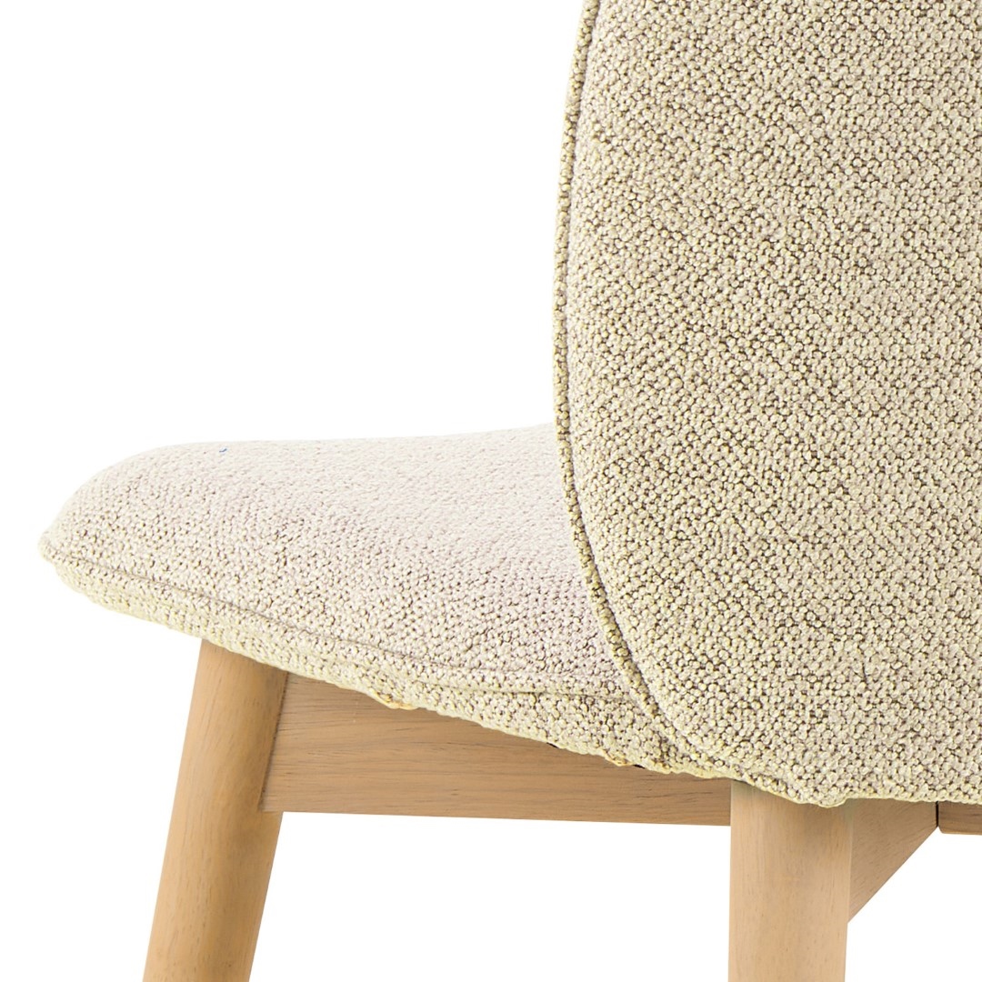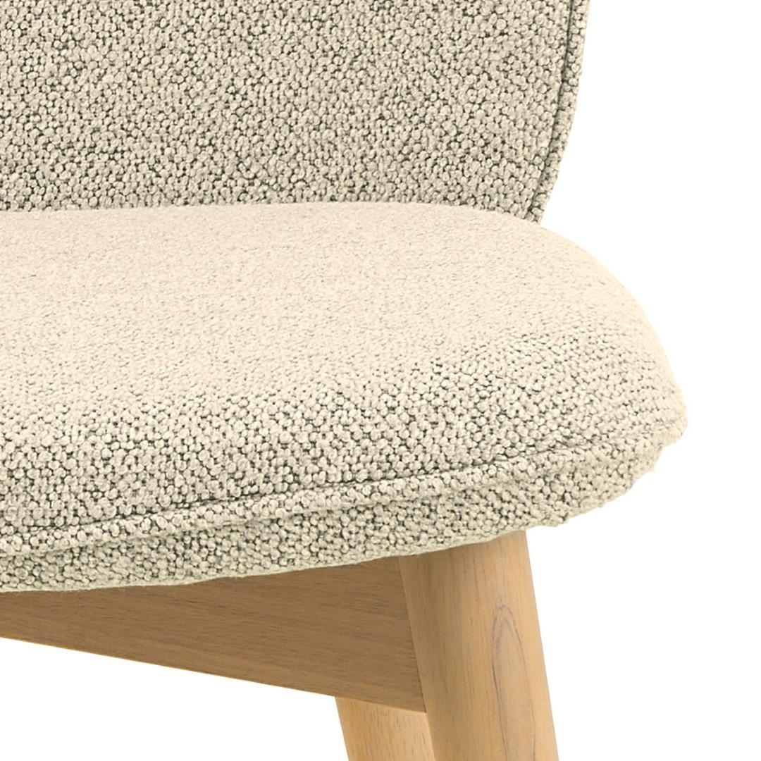 Krzesło Cindy to krzesło do jadalni lub salonu. Zaokrąglone oparcie zapewni wsparcie podczas siedzenia. Krzesło tapicerowane jest miękką tkaniną typu bouclé o kręconej strukturze, która nadaje mu nowoczesnego charakteru. Aby nadać mu lekki, skandynawski wygląd, wsparto go na drewnianych nogach olejowanych oraz bielonych. Krzesło do jadalni Cindy, tkanina Monza w kolorze beżowym 90, podstawa z drewna kauczukowego olejowanego. Wygodne krzesło do jadalni w nowoczesnym, skandynawskim stylu. Tapicerowane beżową tkaniną przypominającą bouclé. Ozdobione lamówką . Certyfikat FSC. Zaprojektowany przez Christinę Aagaard i chroniony wyłącznie dla Actona. Wysokość oparcia 43 cm Szerokość siedziska 49 cm Głębokość siedziska 44,5 cm Max. obciążenie 110kg