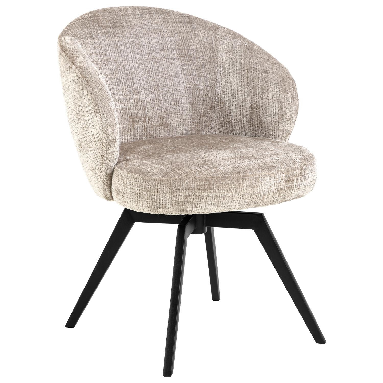 Krzesło Darlene do jadalni z podłokietnikami uosabia nowoczesny design bez kompromisów. Jego eleganckie, zaokrąglone siedzisko jest obite miękką beżową tkaniną o żywej fakturze. Wyposażone w sprężyny kieszeniowe krzesło zapewnia wysoki komfort siedzenia, a funkcje obrotu i automatycznego powrotu ułatwiają poruszanie się przy minimalnym wysiłku. Krzesło do jadalni Darlene z podłokietnikiem w tkaninie Juto beżowa 4 FR wyposażone jest w metalową podstawę czarna, malowaną proszkowo z automatycznym powrotem. Wysokość oparcia 31 cm Szerokość siedziska 51 cm Głębokość siedziska 60 cm Wysokość podłokietnika od podłogi 72 cm Szerokość podłokietnika 7 cm Głębokość podłokietnika 20 cm Wysokość podłokietnika 22 cm Waga krzesła: 9,5kg Max. obciążenie 110kg