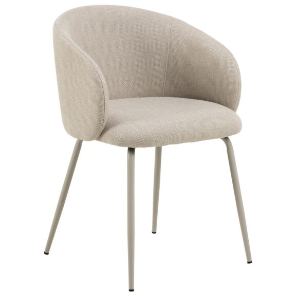 Krzesło Darlene do jadalni z podłokietnikami uosabia nowoczesny design bez kompromisów. Jego eleganckie, zaokrąglone siedzisko jest ozdobione beżową tkaniną o bogatej fakturze. Wyposażone w sprężyny kieszeniowe krzesło zapewnia wysoki komfort siedzenia, a funkcje obrotu i automatycznego powrotu ułatwiają poruszanie się przy minimalnym wysiłku. Krzesło do jadalni wykonane z materiałów ognioodpornych. Beżowa teksturowana tkanina na bazie plastikowych butelek z recyklingu . Funkcje automatycznego powrotu i obrotu ułatwiające poruszanie się. Czarna podstawa wykonana ze stali malowanej proszkowo. Sprężyny kieszeniowe zapewniają wysoki komfort siedzenia . Certyfikat FSC . Zaprojektowany przez projektanta Lasse Cha Pedersena Wysokość oparcia: 31cm Szerokość siedziska: 51cm Głębokość siedziska: 60cm Szerokość podłokietników: 7cm Wymaga montażu Max. obciążenie 110kg Waga krzesła: 9,5kg Max. 1 szt w kartonie Wymiary kartonu: 59x61x52,5cm