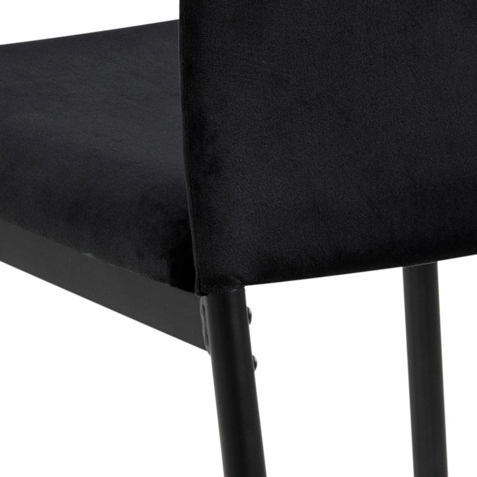 Krzesło do jadalni Demina, tkanina Dublin, kolor czarny 50, podstawa z czarnej stali malowanej proszkowo.