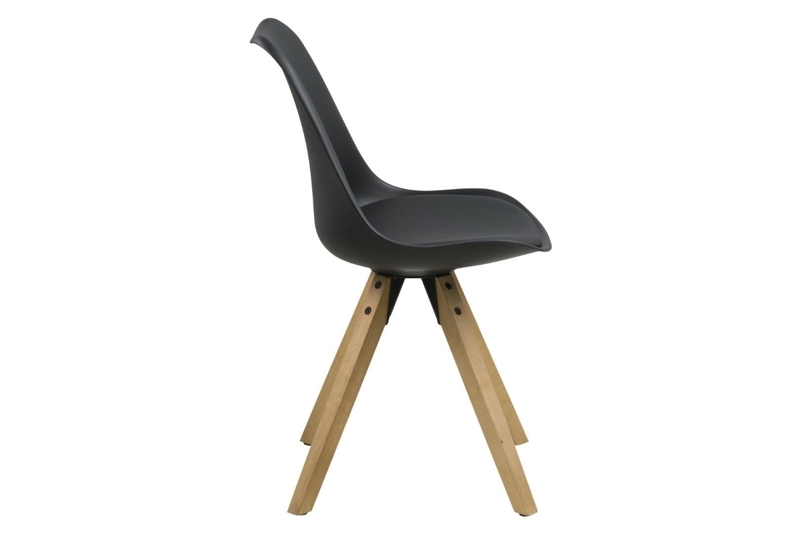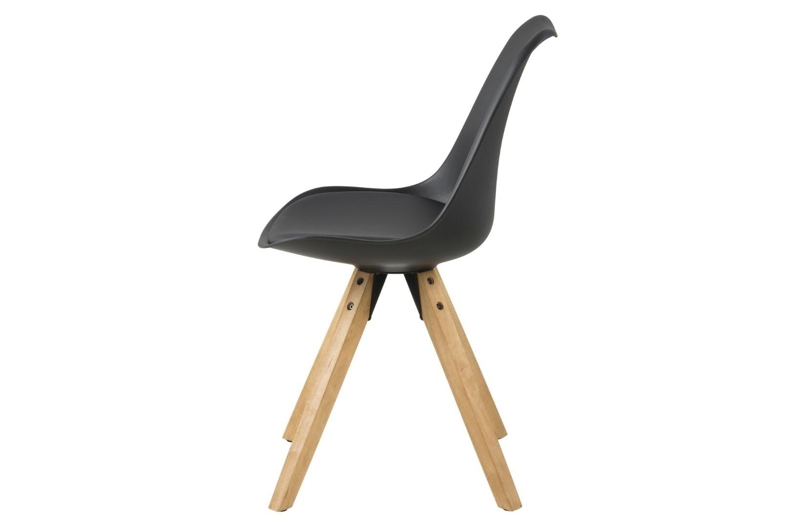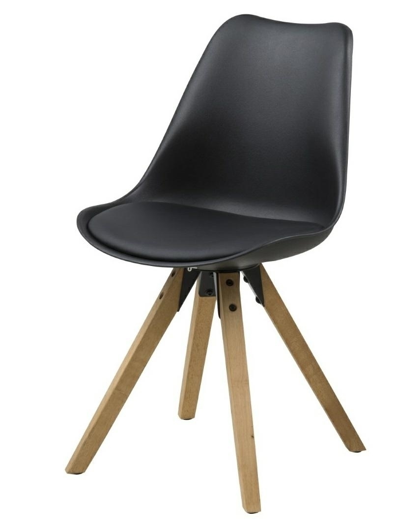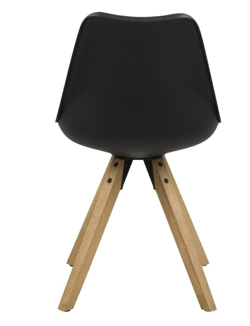Krzesło Dima odznacza się prostą ale zachwycającą formą. Siedziko zostało zrobione z tworzywa w kolorze czarnym. Dodatkowo umieszczona została poduszka tapicerowanaskórą ekologiczną w kolorze czarnym. Podstawa wykonana została z olejowanego drewna kauczukowego pokrytego bejcą w kolorze dębu. Krzesło wymaga montażu. Maksymalne obciążenie: 120kg Waga krzesła to 7 kg. Maksymalna ilość szt. w kartonie: 2 Wymiary kartonu: 71 cm x 51cm x 38 cm Wysokość siedziska: 46 Głębokość siedziska: 40,5 Szerokość siedziska: 48