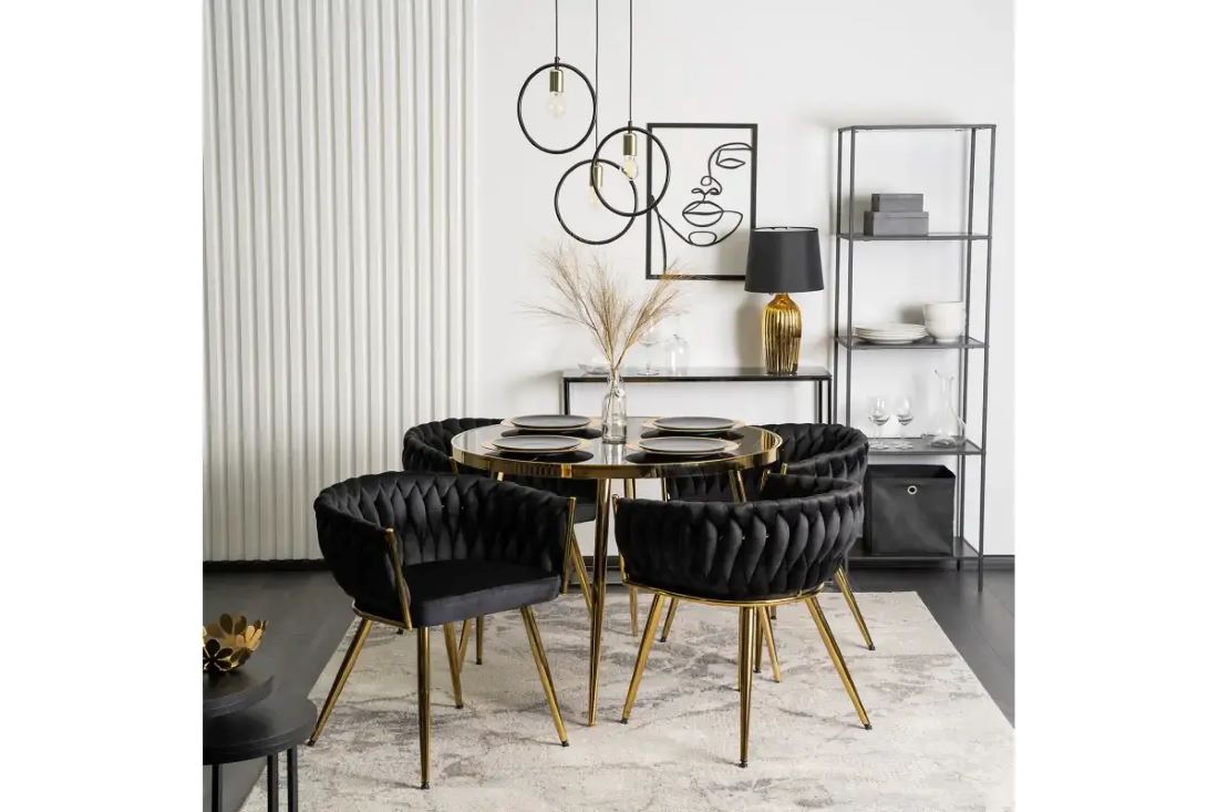 Solidny stelaż w złotym kolorze idealnie współgra z tapicerką, tworząc kontrast, który dodaje krzesłu wyrazistości i elegancji. Złote akcenty w stelażu podkreślają luksusowy charakter krzesła , sprawiając, że idealnie wpasuje się zarówno w nowoczesne, jak i klasyczne wnętrza.