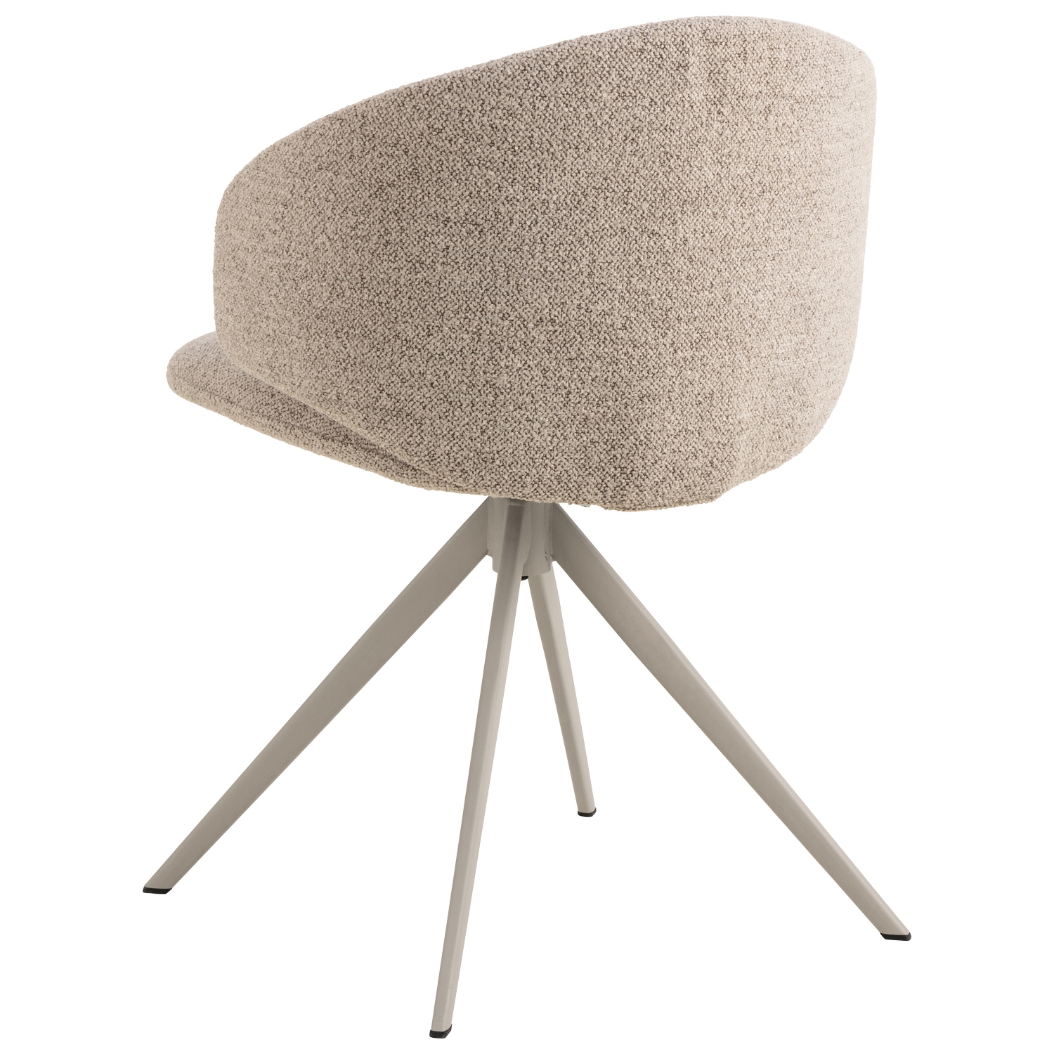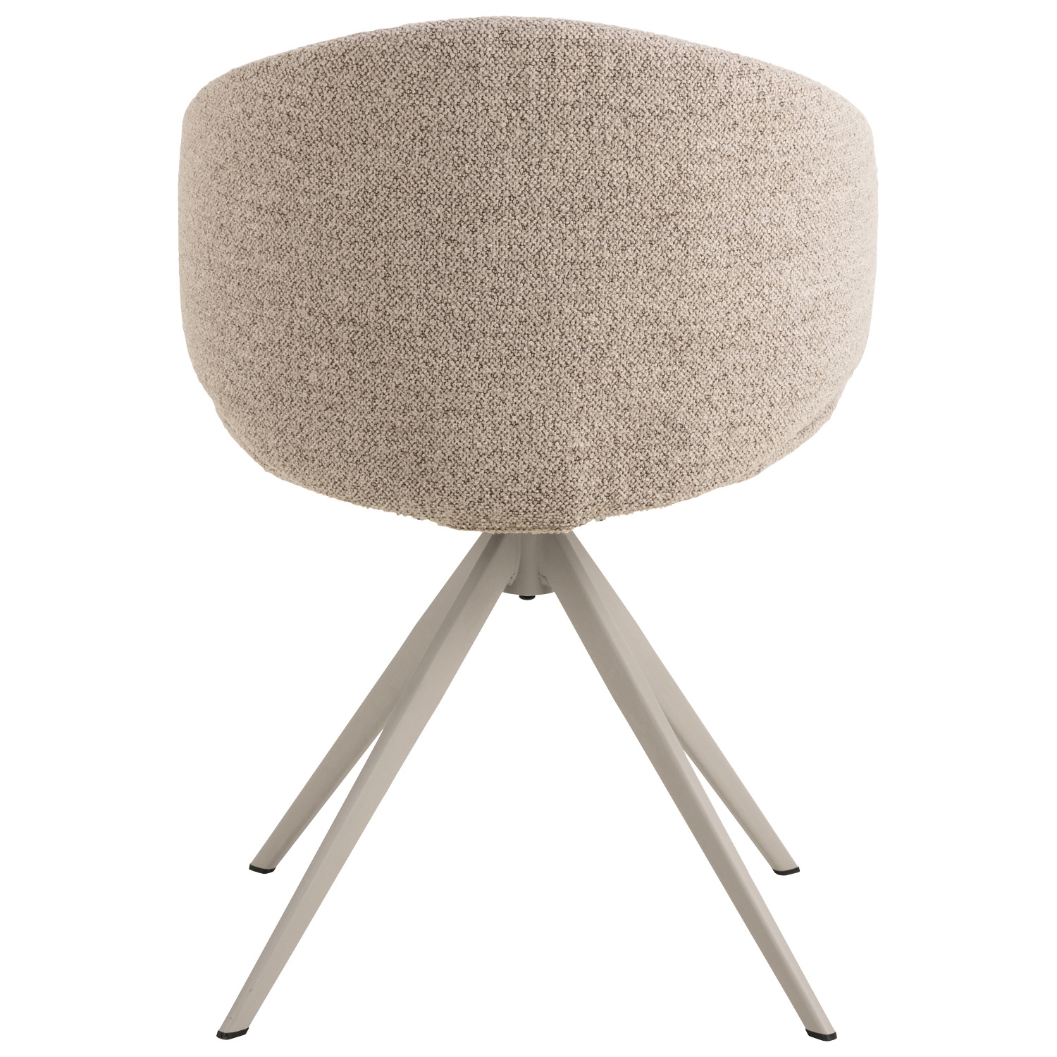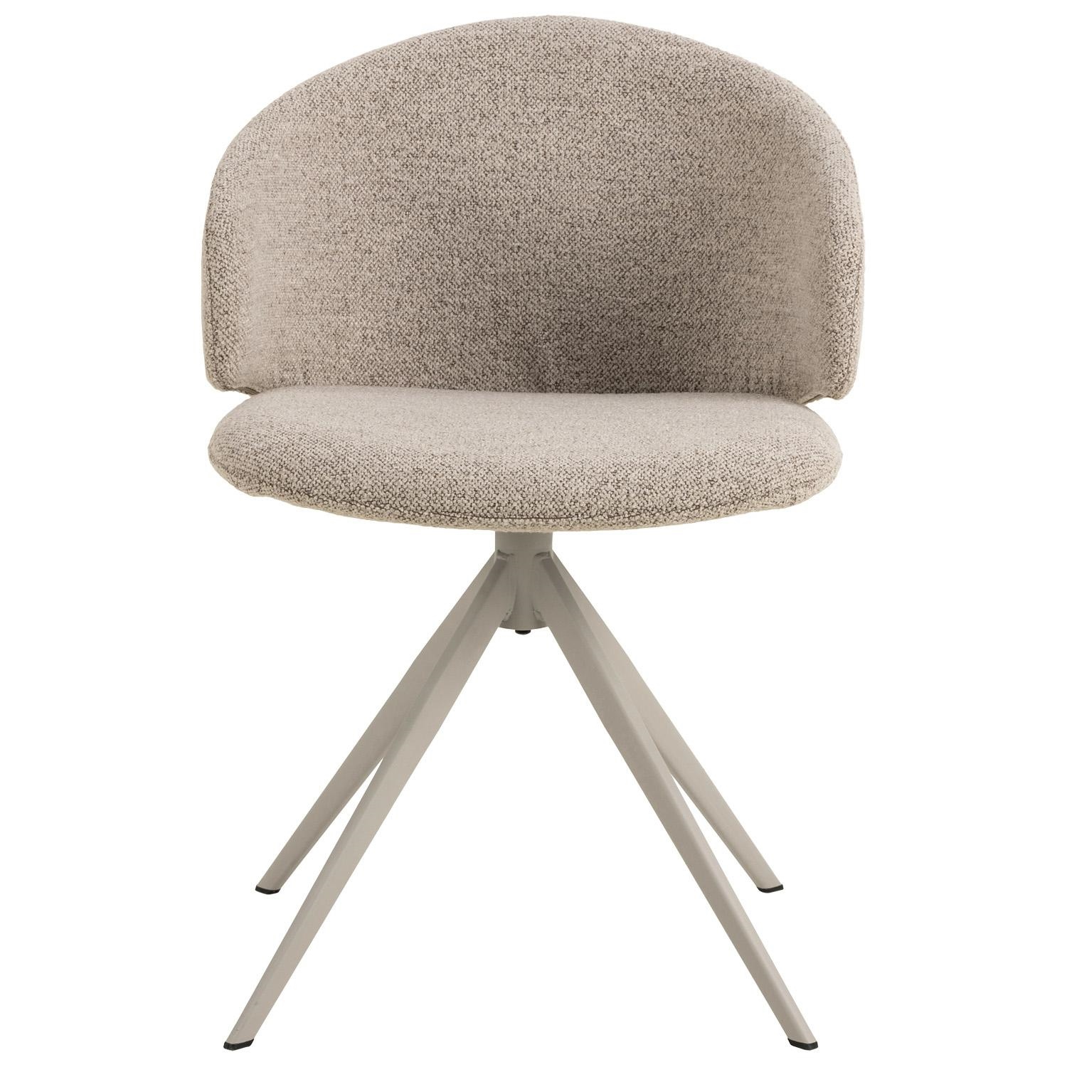 To beżowe krzesło do jadalni zachwyca swoją gładką, zaakcentowaną formą. Zaokrąglone oparcie zwiększa estetykę i wygodę, umożliwiając swobodne siedzenie. Wsparte na 4-gwiazdkowej obrotowej podstawie wykonanej z szarej stali, to krzesło w miękkim obiciu przypominającym bouclé łączy styl z funkcjonalnością i zapewnia przyjemne doznania podczas siedzenia. Wysokość oparcia 33 cm Szerokość siedziska 50 cm Głębokość siedziska 44,5 cm Max. obciążeni 110kg Waga krzesła 8,7kg