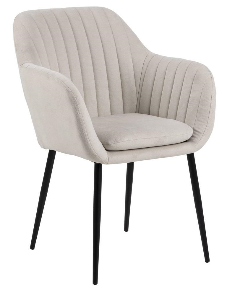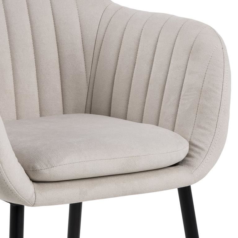 Krzesło Emilia to niezwykle efektowny mebel, który nawiązuje do stylu skandynawskiego. Tapicerowane siedzisko wykonane z tkaniny Enjoy fabric sand 1posiada efektowne pionowe pikowanie na oparciu. Podstawa wykonana z olejowanego dębowego drewna, prezentuje się perfekcyjnie. Maksymalne obciążenie: 120kg Waga krzesła: 9,8 kg Ilość sztuk w kartonie: 1 Wymiary kartonu: 58 cm x 61 cm x 50,5 cm Wysokość siedziska: 49 cm Szerokość siedziska: 40 cm Głębokość siedziska: 39 cm Wysokość podłokietników: 23 cm
