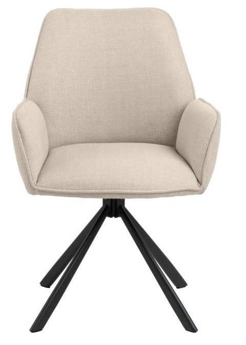 Dzięki minimalistycznej budowie, krzesło Genda sprawdzi się do jadalni w stylu japandi, boho lub skandi. Siedzisko tapicerowane ciekawą, grubo plecioną tkaniną z efektem dwóch odcieni w zalęzności jak pada światło na mebel. Gruba lamówka na obrzeżach oparcia, podłokietników i siedziska dodaje eleganckiego wyglądu. Nowoczesna czarna 4-gwiazdkowa podstawa z obrotowym mechanizmem dopełnia nowoczesnego charakteru krzesła. Podstawa krzesła malowana proszkowo na czarny mat. Certyfikat FSC Wymaga montażu. Max. obciążenie 110 kg. Szerokość siedziska: 44 cm głębokość siedziska: 46 cm Wymiary kartonu: 62x62x57,2 cm. Max. 2 szt w kartonie