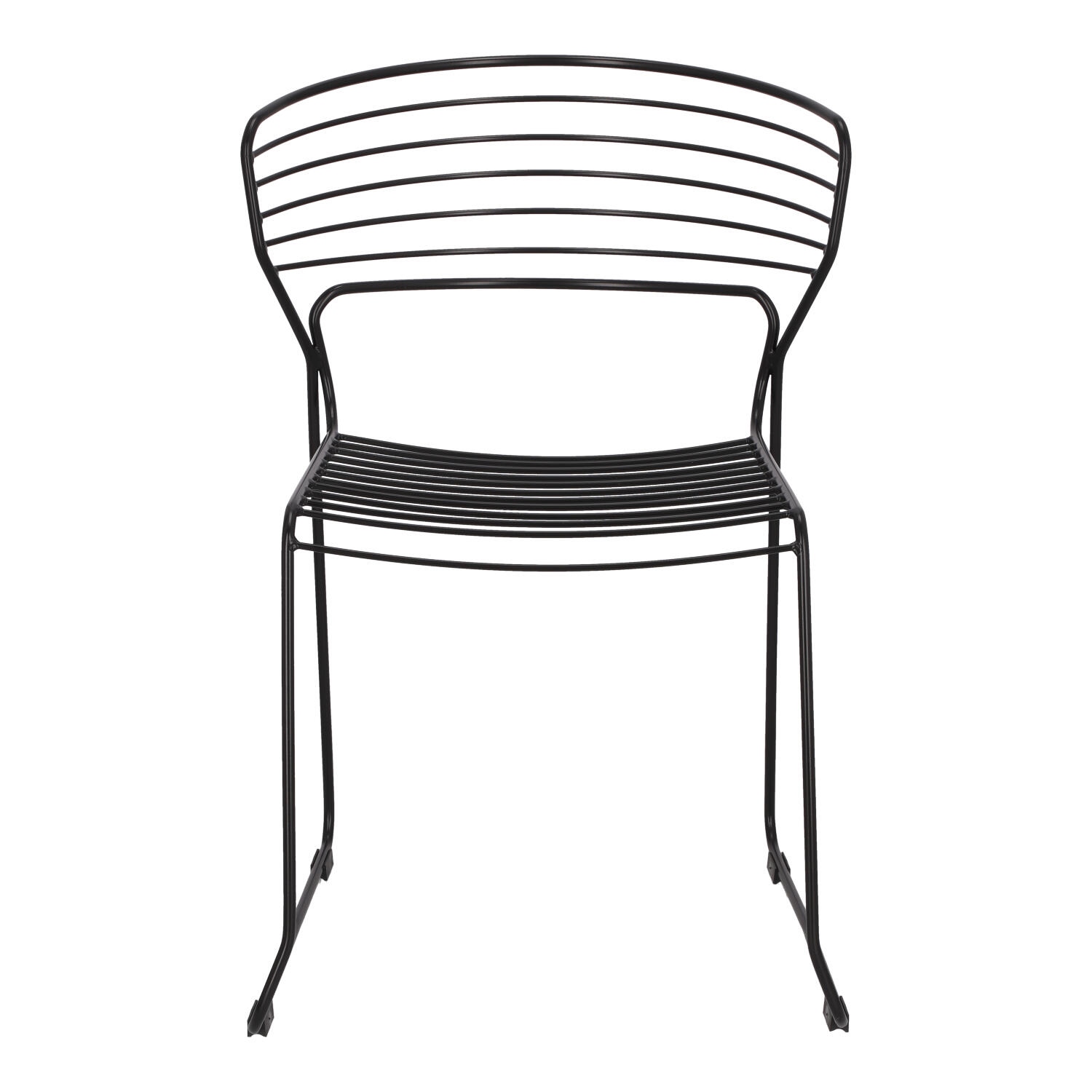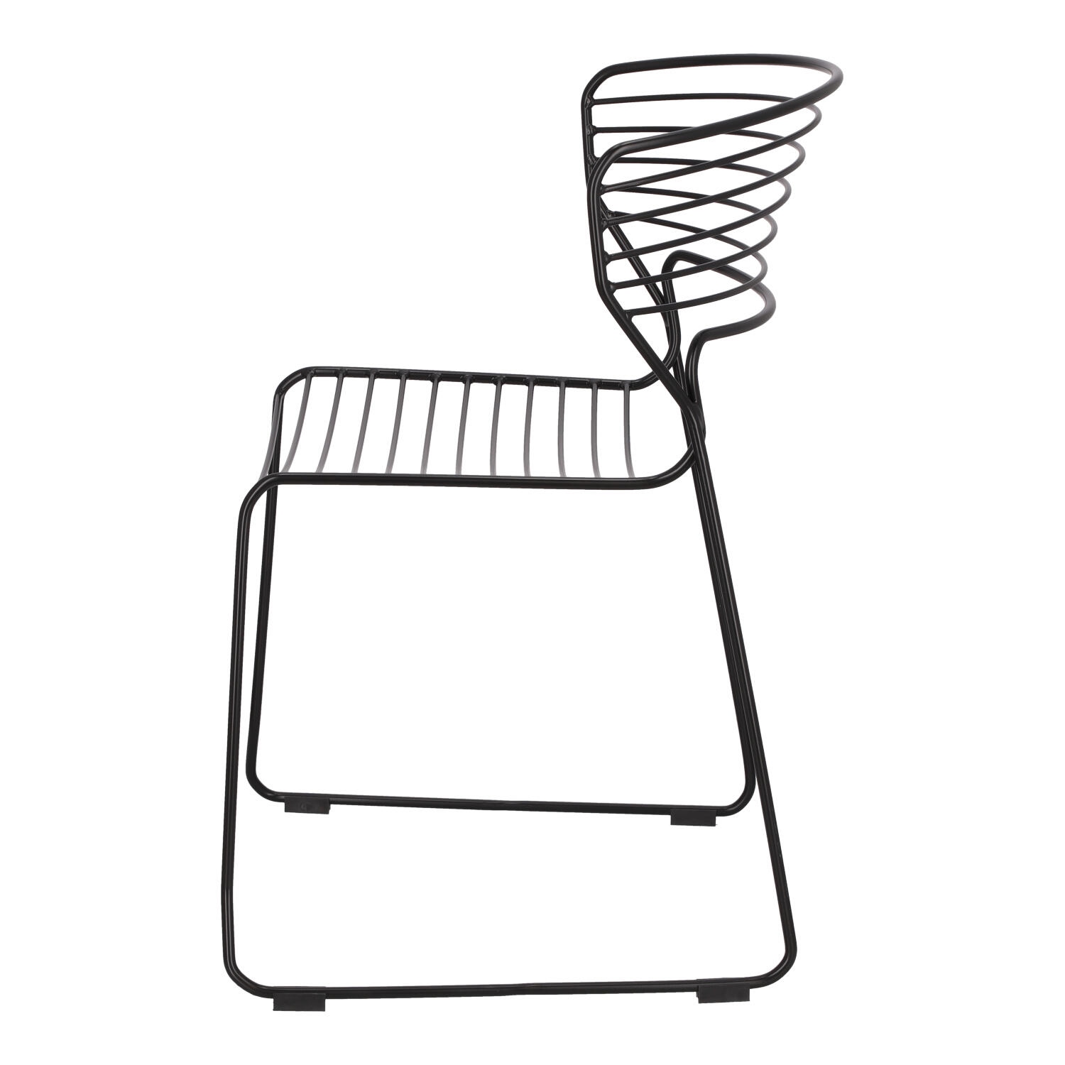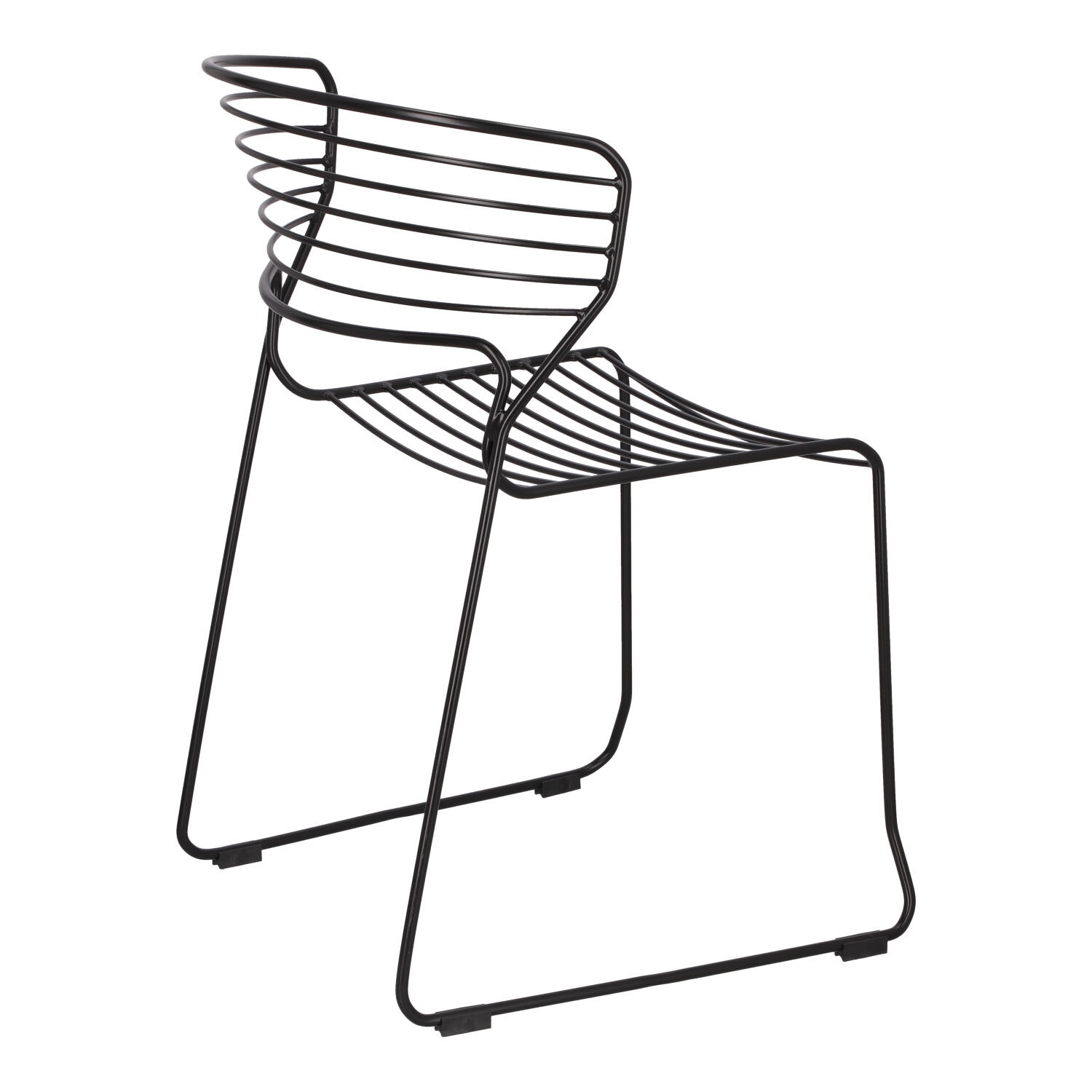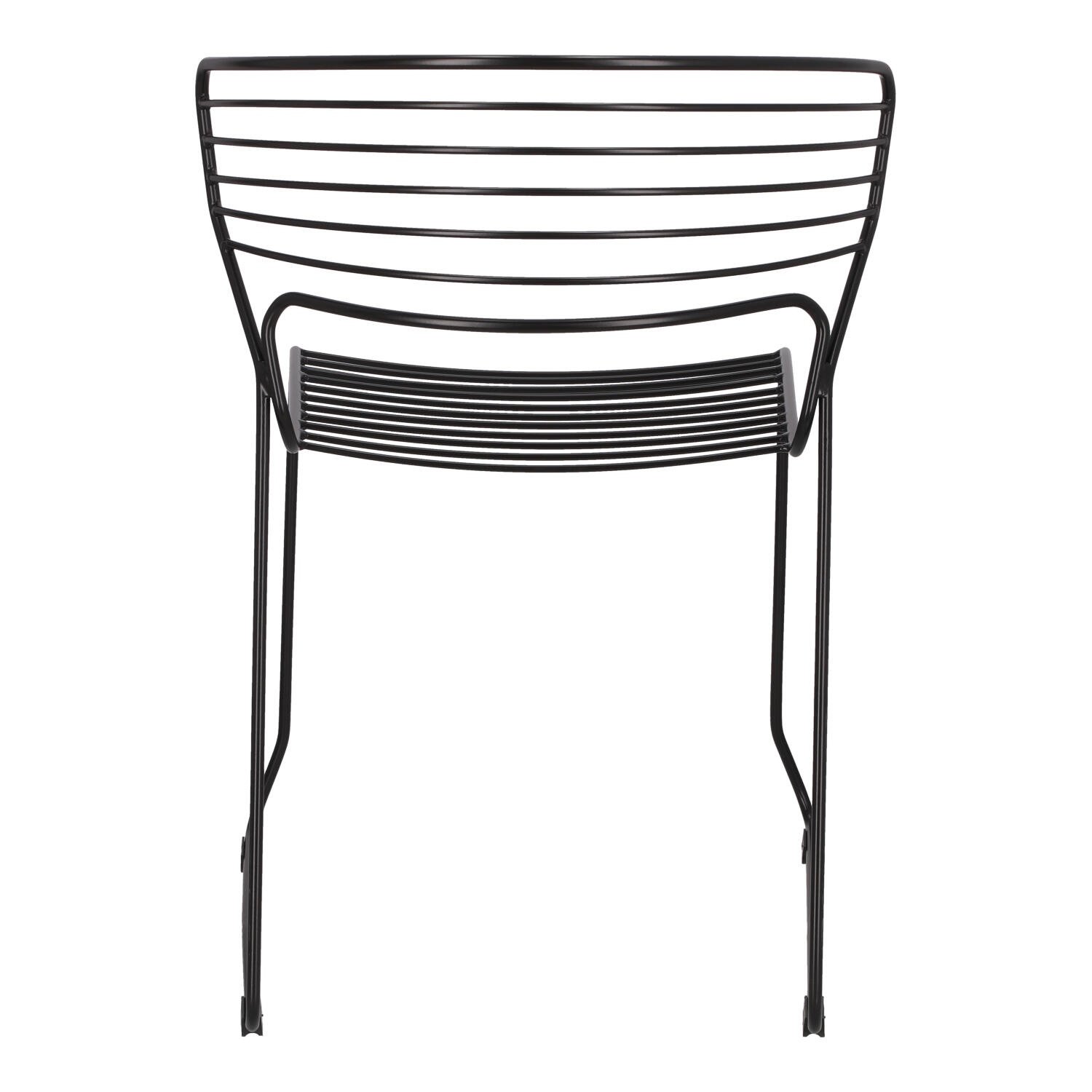 Metalowe, druciane krzesło z wyprofilowanym, wygodnym oparciem to jest mebel poszukiwany przede wszystkim przez osoby lubiące minimalizm i klasyczny, elegancki wystrój. Krzesło Hilly wykonane w całości zostało z metalu, malowanego proszkowo na czarno. Krzesło na płozach posiada dodatkowe, stopki z plastiku, które nie tylko dodają stabilizacji meblowi, ale również chronią nogi krzesła jak i podłogę przed zarysowaniami. Metalowe krzesło idealnie komponuje się z kolorowymi poduszkami na siedzisku. Metalowe, malowane proszkowo. Maksymalne dopuszczalne obciążenie krzesła:110 kg Krzesło jest odporne na warunki atmosferyczne, dlatego możemy używać je na zewnątrz. Krzesło nie wymaga montażu. Krzesło sztapluje się. Maksymalne sztosy jakie można ułyżyć to 6 szt. Max 4 szt w kartonie. Wymiary kartonu: 61x59x89 cm