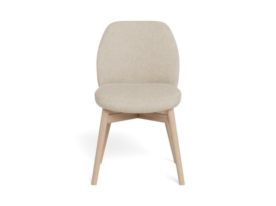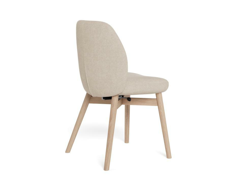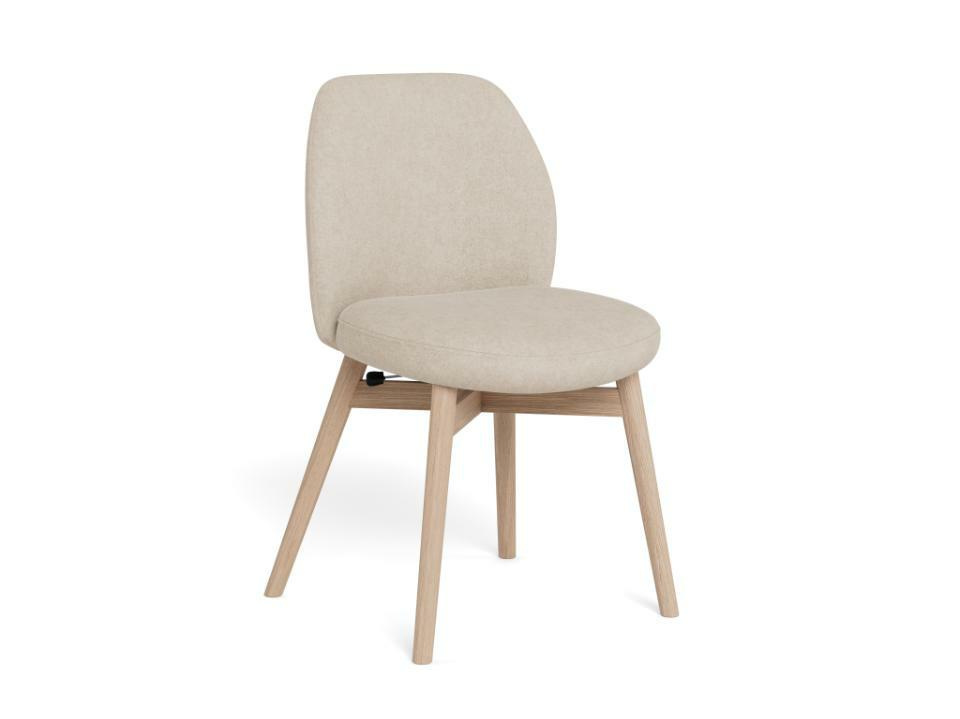 Miękka tapicerka i białe, pigmentowane odcienie drewna nadają temu krzesłu do jadalni spokojny, przyjazny wyraz. Delikatnie zaokrąglone siedzisko i oparcie zapewniają relaksujący komfort przy stole, a dyskretna funkcja bezstopniowego odchylania pozwala fotelowi w naturalny sposób dostosować się do osoby siedzącej.