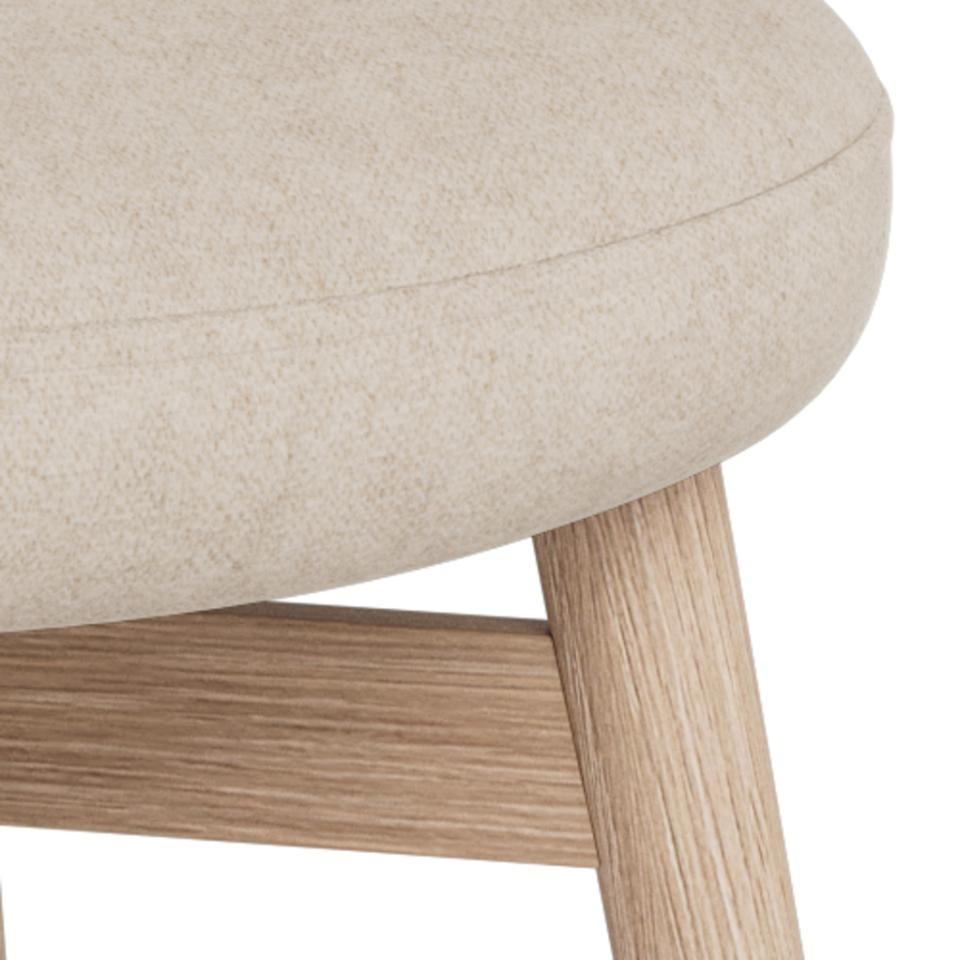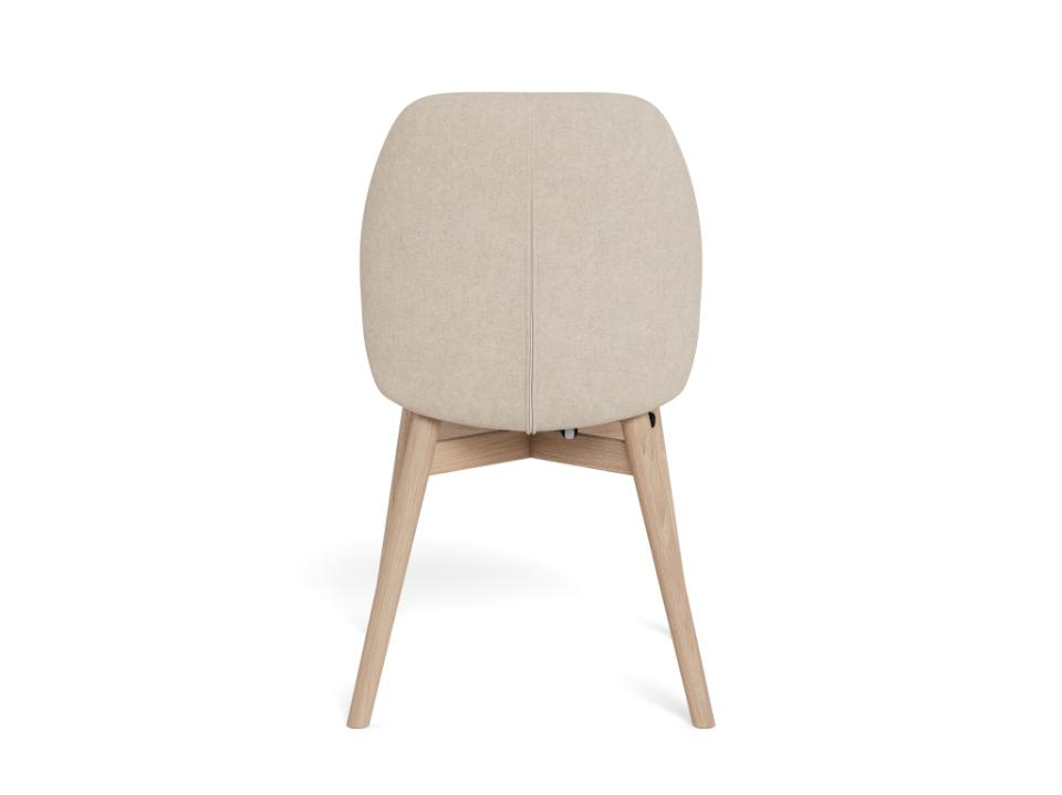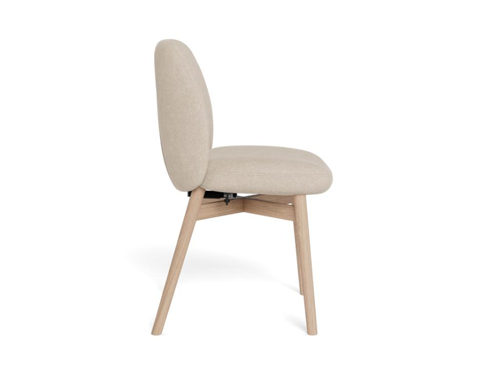 Krzesło do jadalni Joy, tkanina Apia piaskowa 140, podstawa z białego, olejowanego dębu, z bezstopniowym odchyleniem.