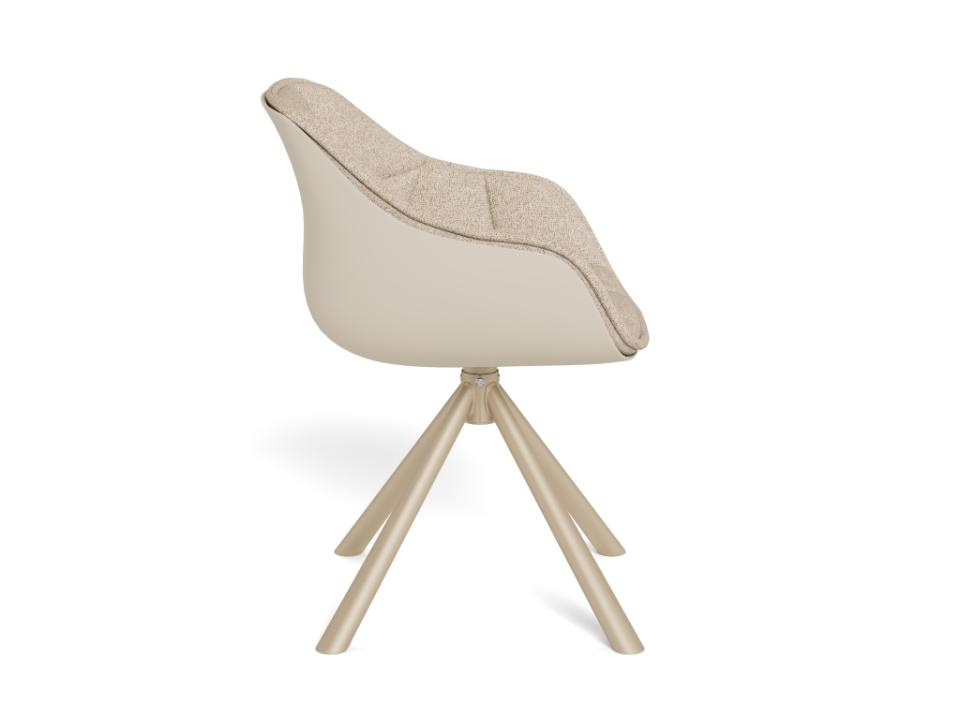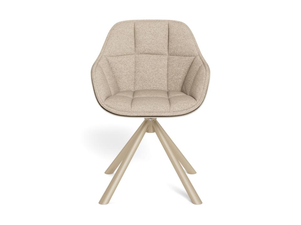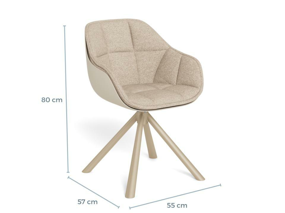 Krzesło do jadalni Lenny z podłokietnikiem, tkanina Cona beżowa 1 i beżowy, surowy polipropylen, 4-ramienna podstawa, matowa, beżowa, surowa stal malowana proszkowo, z luźną poduszką na siedzisko, kwadratowe przeszycia i obrotowa podstawa.