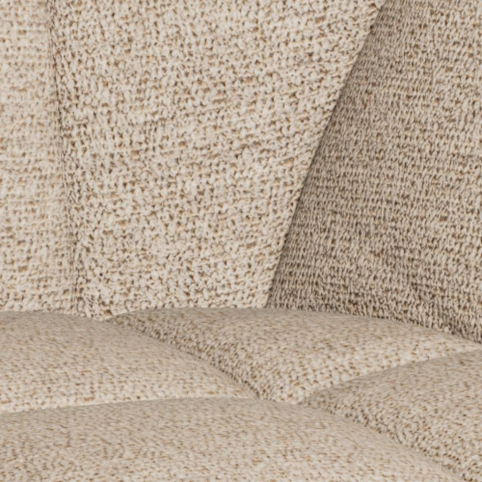 To krzesło do jadalni, charakteryzujące się nowoczesnym wyrafinowaniem, z łatwością zwiększa atrakcyjność wizualną każdej jadalni. Twarda skorupa jest podszyta beżową tkaniną przypominającą bouclé z ozdobnymi szwami, nadającą jej teksturowany wygląd. Beżowa 4-ramienna podstawa posiada funkcję obrotu ułatwiającą obracanie siedziska.