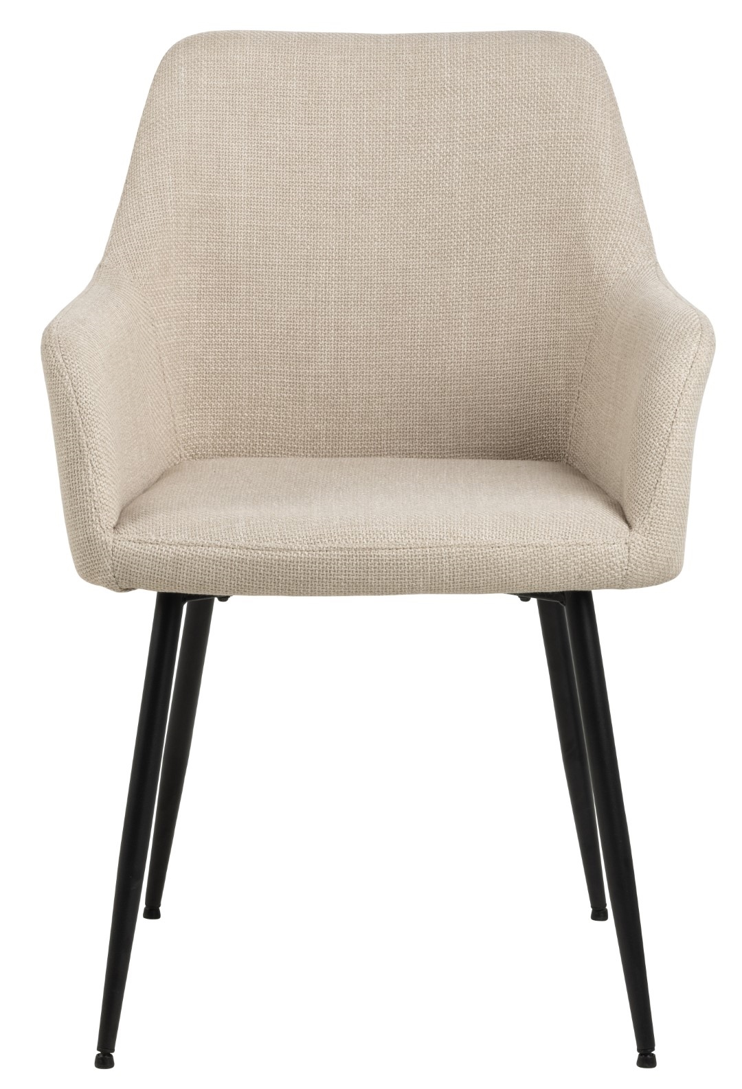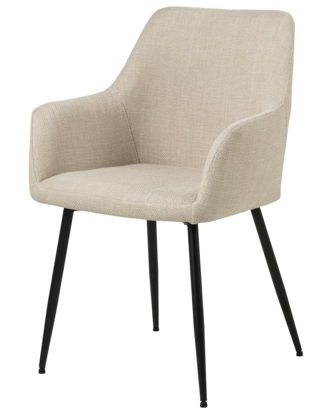Krzesło do jadalni Lizzy z podłokietnikami obite tkaniną Basel beige 24 wykonane zostało z czarnej matowowej malowanej proszkowo podstawy oraz, z zamkiem błyskawicznym na plecach tapicerowanego oparcia. Charakteryzujące się ponadczasową elegancją, klasyczne krzesło z podłokietnikami jest tapicerowane grubą beżową tkaniną z efektem dwukolorowym. Nadaje to projektowi ładny, uporządkowany wygląd. Uzupełnione smukłymi nogami z czarnej stali, krzesło nabiera uniwersalnego wyglądu, który pasuje do różnych stylów jadalni. Główne cechy: Krzesło do jadalni z podłokietnikiem o eleganckim i uniwersalnym wyglądzie, Tapicerowane strukturalną tkaniną w kolorze beżowym z efektem dwukolorowym. Max. obciążenie 110 kg. Krzesło wymaga montażu. Waga krzesła: 5,3 kg. Szerokość siedziska: 42,5cm Głębokość siedziska: 44cm Wysokość oparcia: 39cm Wysokość podłokietników od siedziska: 17cm. Głębokość podłokietników: 30 cm Max. 2 szt w kartonie Karton: 60x60x52 cm