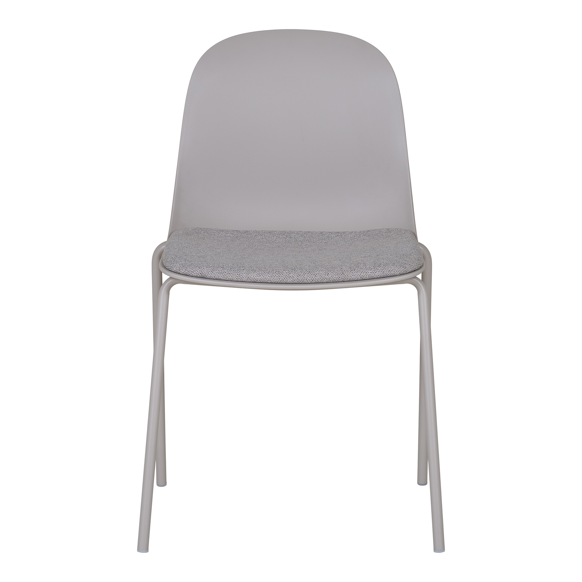 Krzesło z siedziskiem z tworzywa sztucznego zostało dodatkowo wyposażone w poduszkę na siedzisku (brak możliwości zdjęcia poduszki). Całość podełniają metalowe, malowane proszkowo 4 nogi. Materiał:Stal, poliester, odporne formowane tworzywo sztuczne- polipropylen Typ podstawy:Metalowa w kolorze szarym Rodzaj tkaniny:Poliester Waga netto (kg):5.1 Wysokość siedziska (cm):48 Głębokość siedziska (cm):42 Wymaga montażu Max. obciążenie 110kg