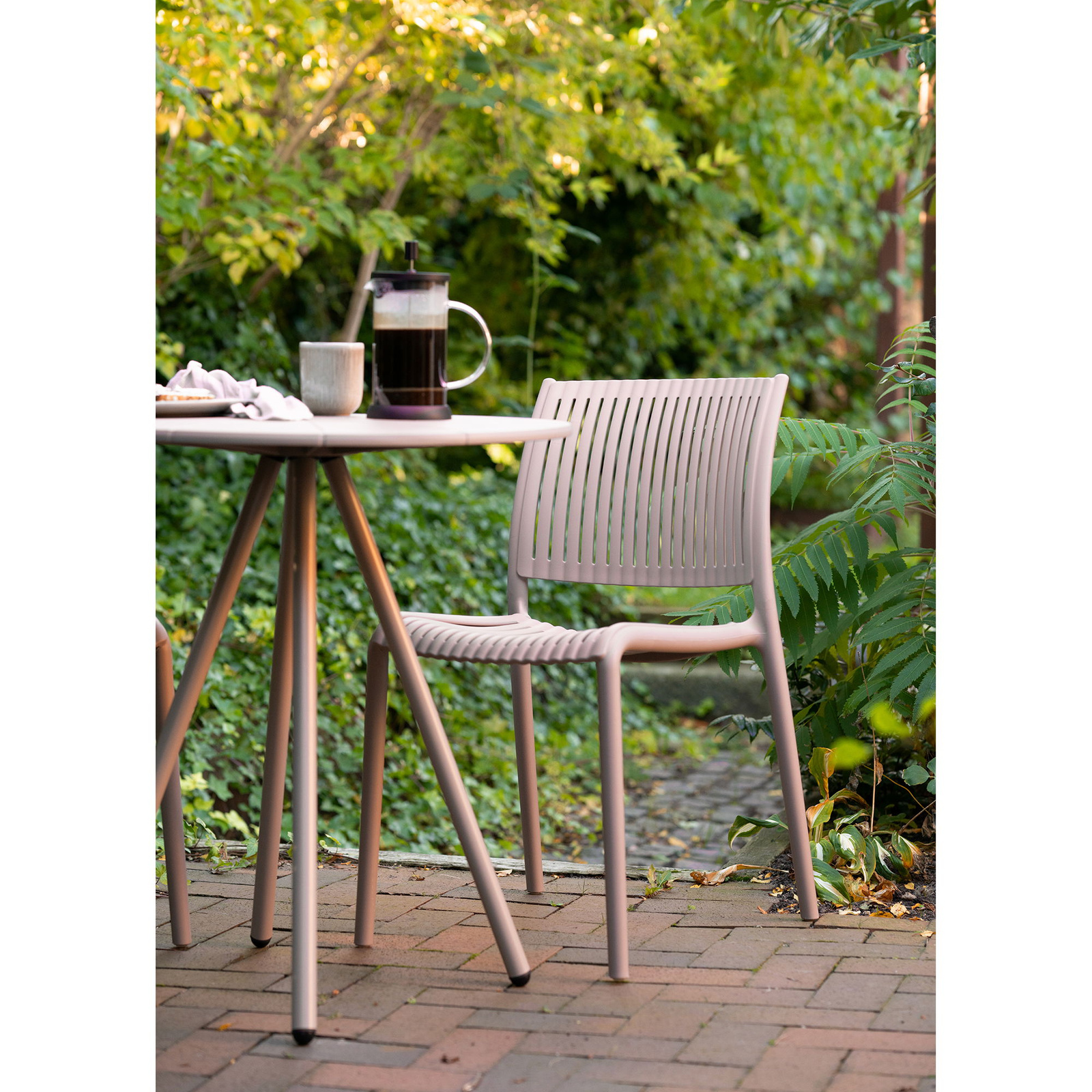 PP to twardy materiał termoplastyczny. Dzięki odporności na promieniowanie UV krzesło zachowuje swój kolor. Krzesło można sztaplować.