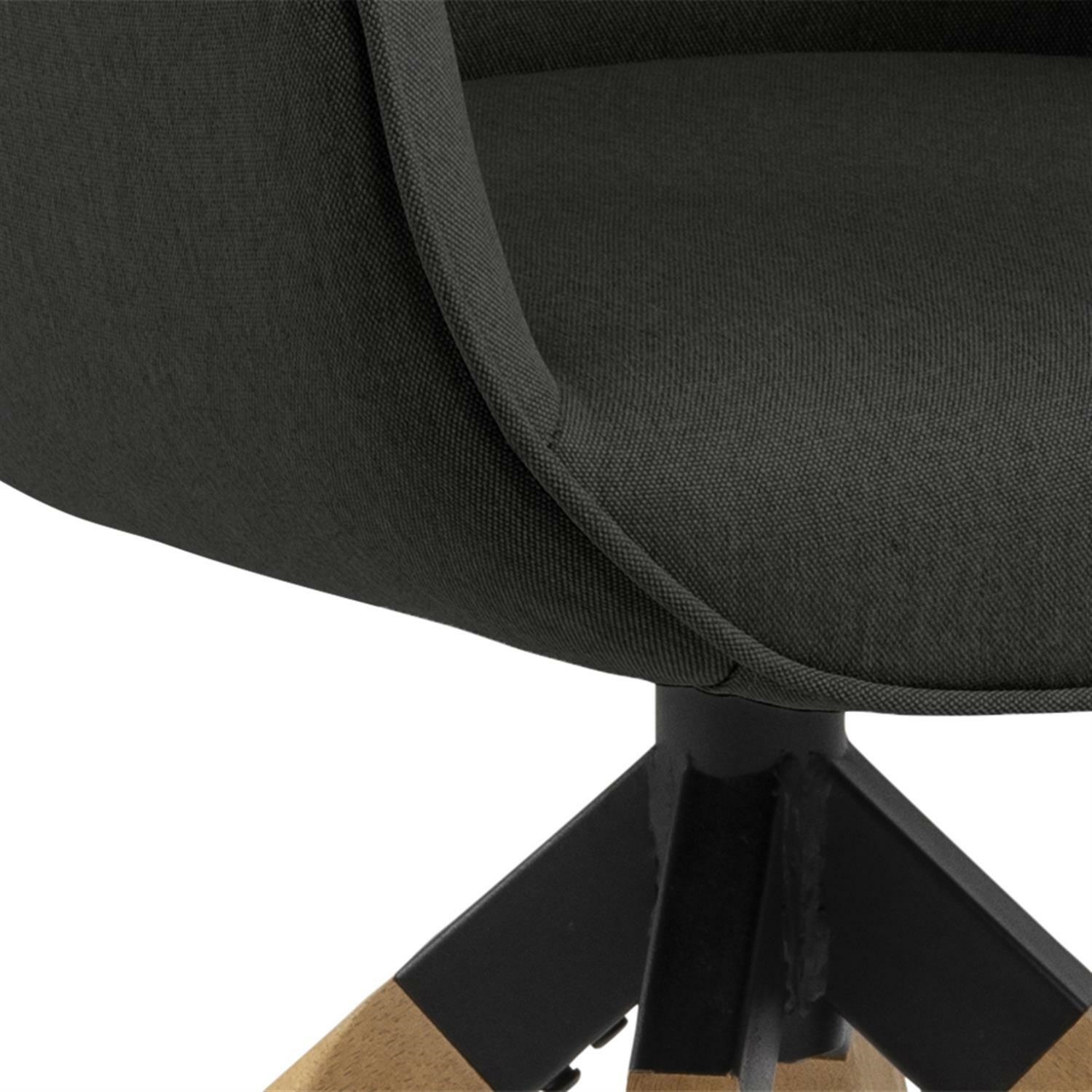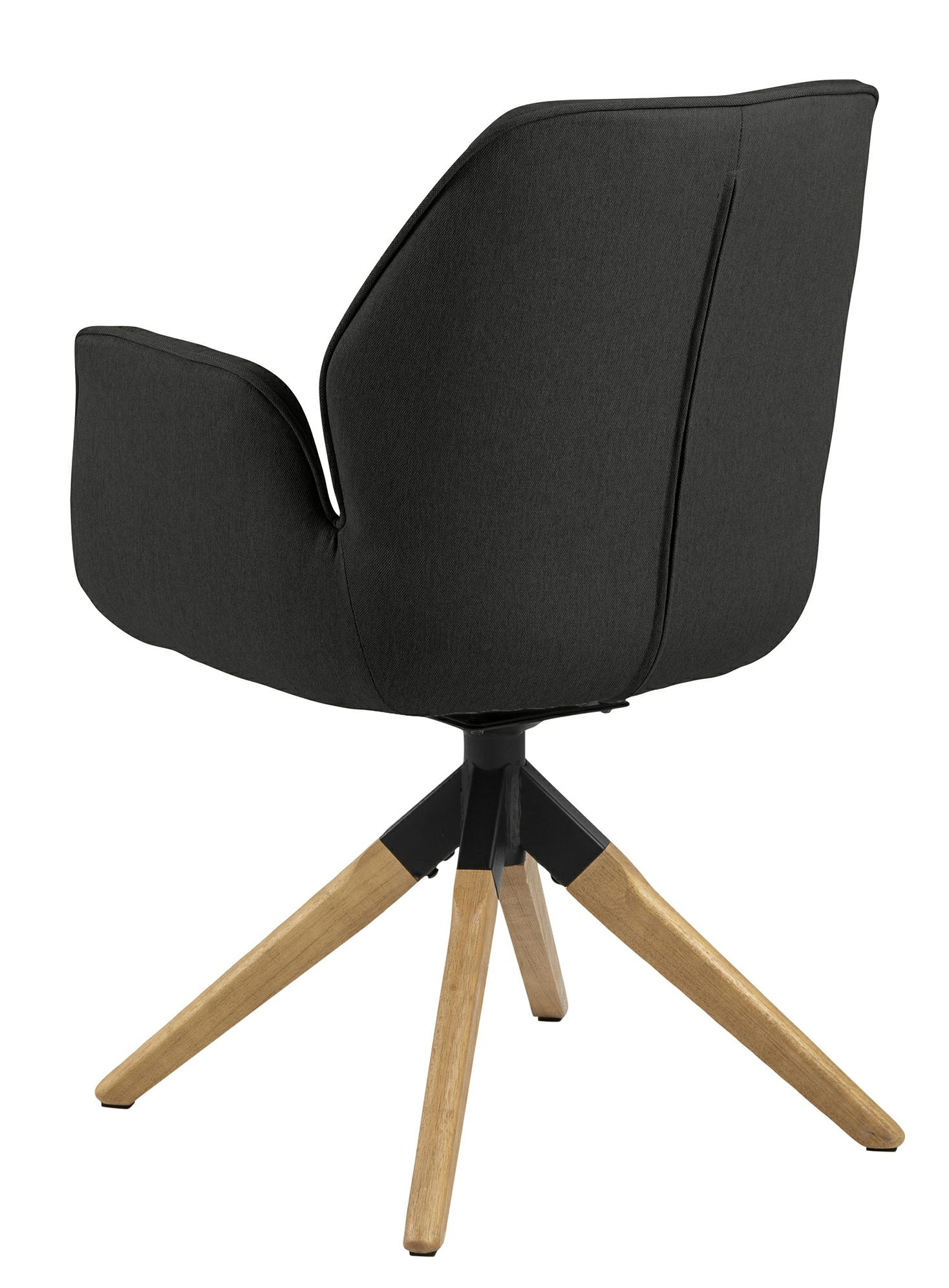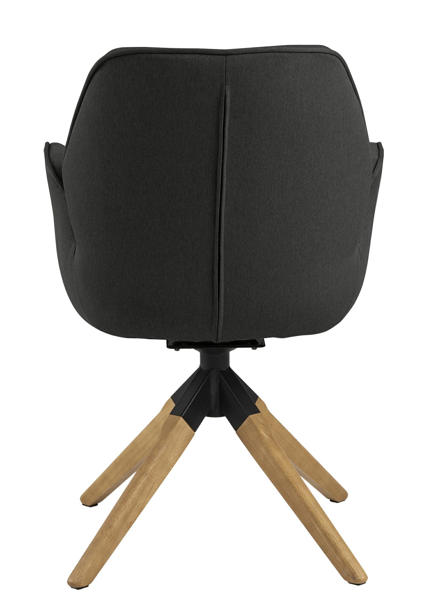 Krzesło w skandynawskim stylu Aura jest niezwykle efektownym i wygodnym siedziskiem. Odpowiednio wyprofilowane siedzisko zostało obite miękką pianką tapicerską oraz tkaniną Town dark grey33. Tkanina krzesła jest łatwa w utrzymaniu w czystości. Ciepły odcień szarości sprawi, że wnętrze jadalni lub salonu stanie się ciepłym i przytulnym. Podłokietniki o optymalnej wysokości zostały wyprofilowane na zewnątrz, aby spotęgować komfort siedzenia. Podstawą krzesła są cztery nogi z litego olejowanego drewna kauczukowego.. Nogi krzesła wychodzą z jednego wspólnego punktu i rozchylają się dość szeroko, aby zagwarantować stabilizację. Siedzisko krzesła jest obrotowa. Funkcję tą zawdzięcza czarnemu, metalowemu mechanizmowi, który prócz funkcji obrotu łączy również krzesła z siedziskiem. Wymiary kartonu: 77x42x62cm Max. ilość szt w kartonie: 1 Waga: 12kg